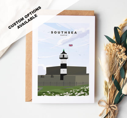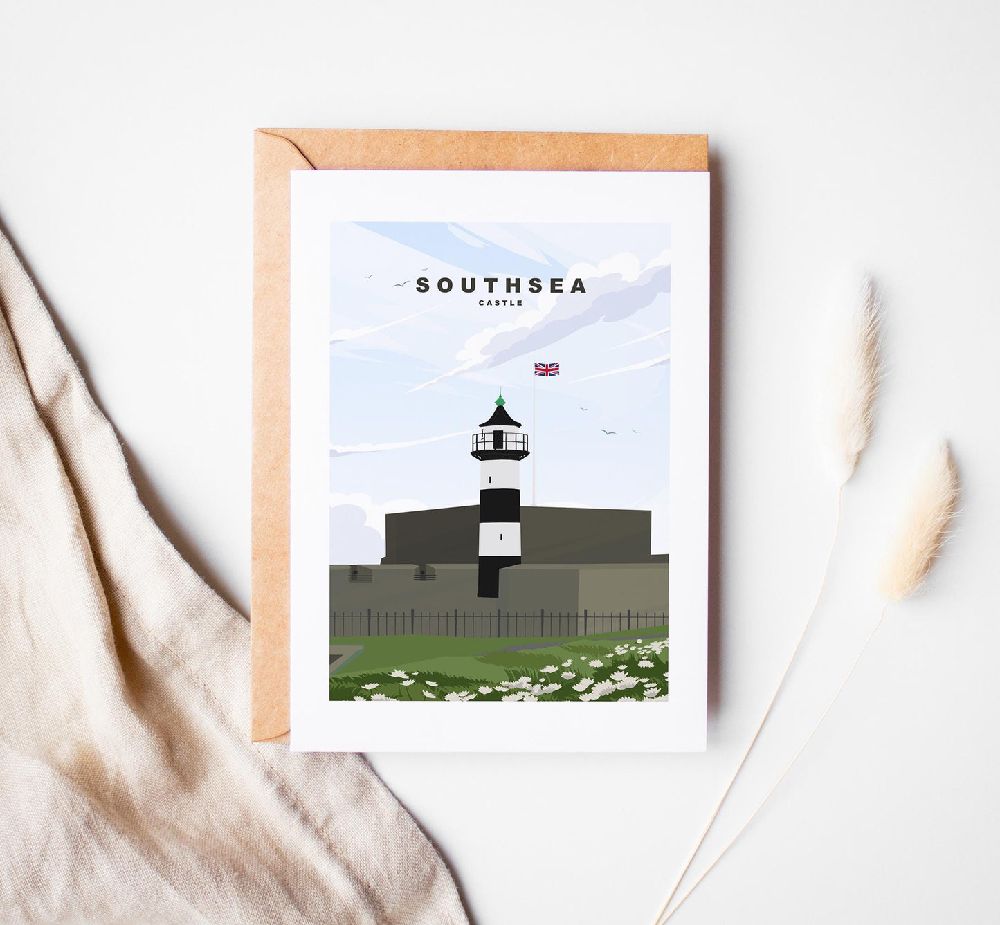 Southsea Castle Greeting Card - All of our cards are printed on 300gsm white recycled card stock and supplied with a recycled kraft envelope. Available blank inside or with an included message if you would like to send the card straight to the recipient!
