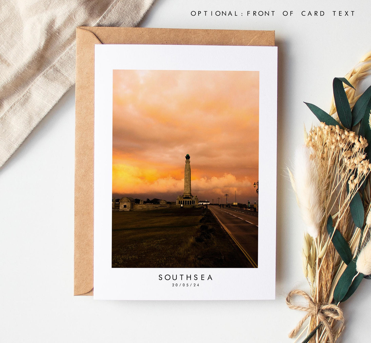 Southsea Seafront Greeting Card - featuring original photography by us. All of our cards are printed on 300gsm white recycled card stock and supplied with a recycled brown kraft envelope. Available blank inside or with an included message if you would like to send the card straight to the recipient!