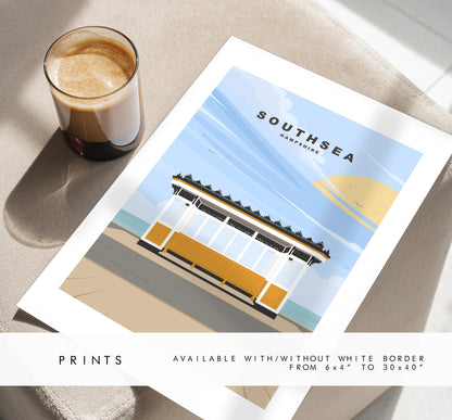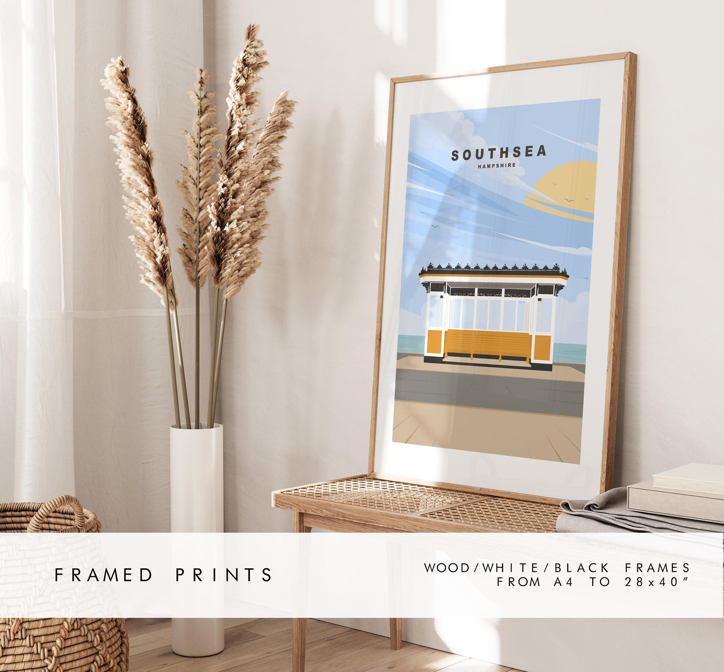 Southsea Travel Poster - Wall Art Print - Southsea and Portsmouth Travel Posters - Minimalist Retro Style - Prints or Framed Prints