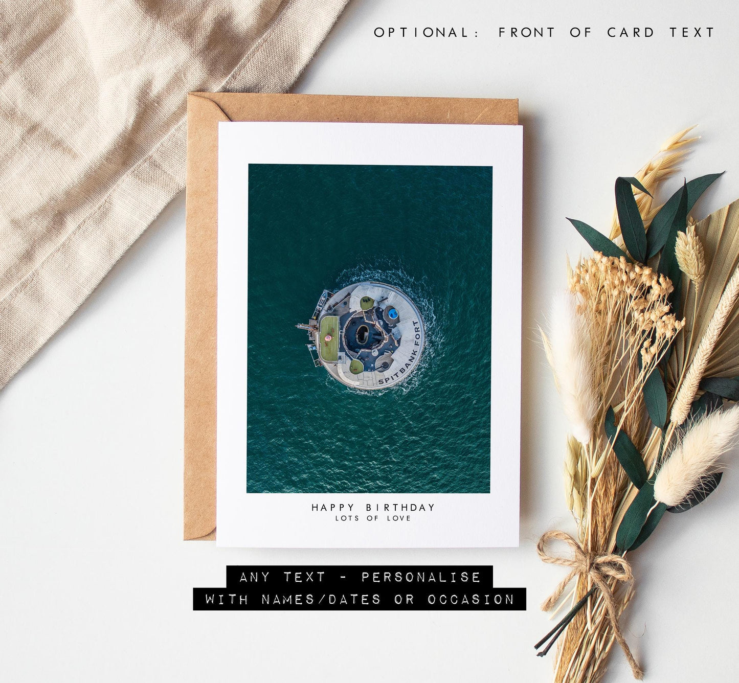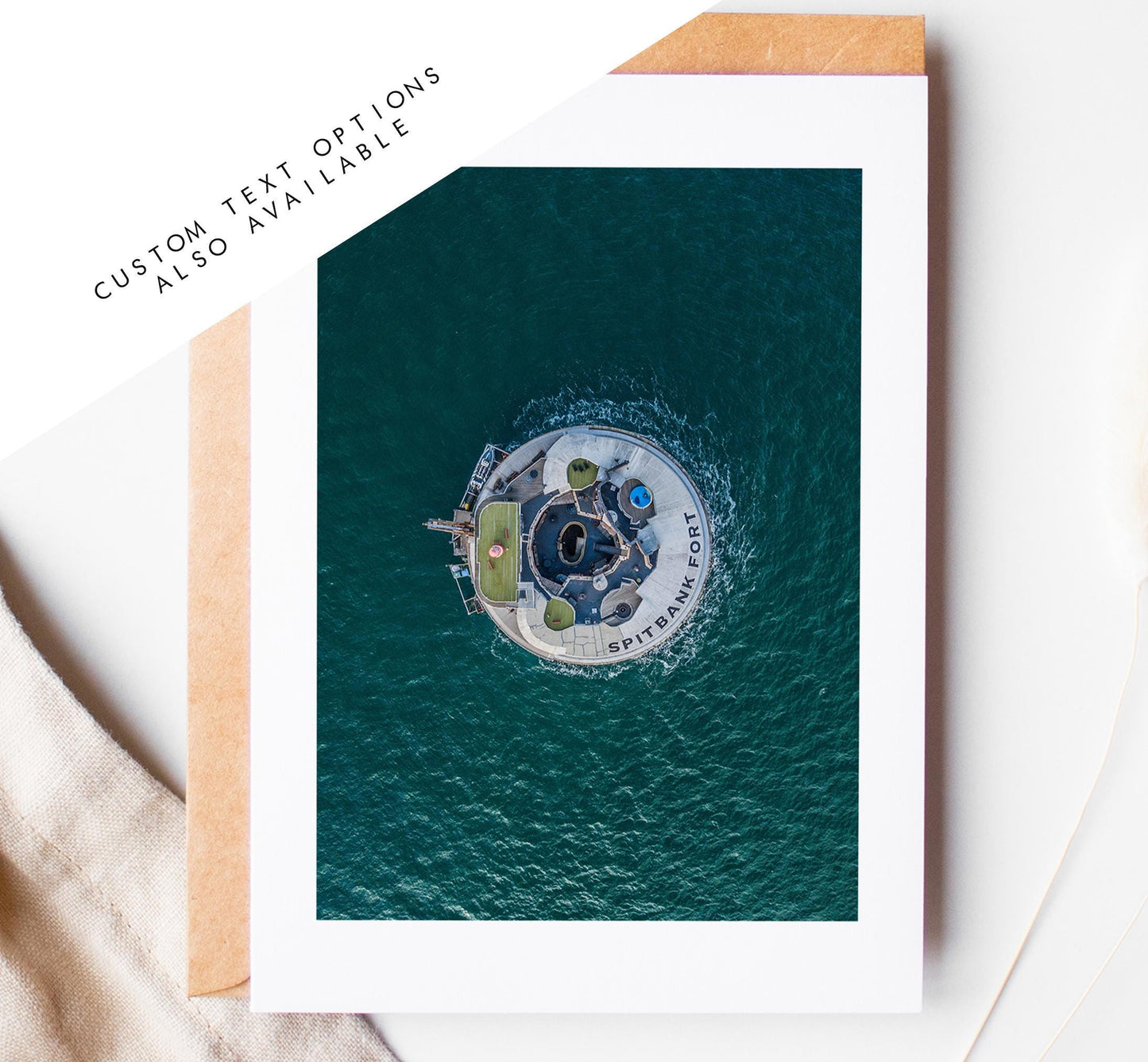Spitbank Fort Greeting Card - featuring original photography by us. All of our cards are printed on 300gsm white recycled card stock and supplied with a recycled brown kraft envelope. Available blank inside or with an included message if you would like to send the card straight to the recipient!