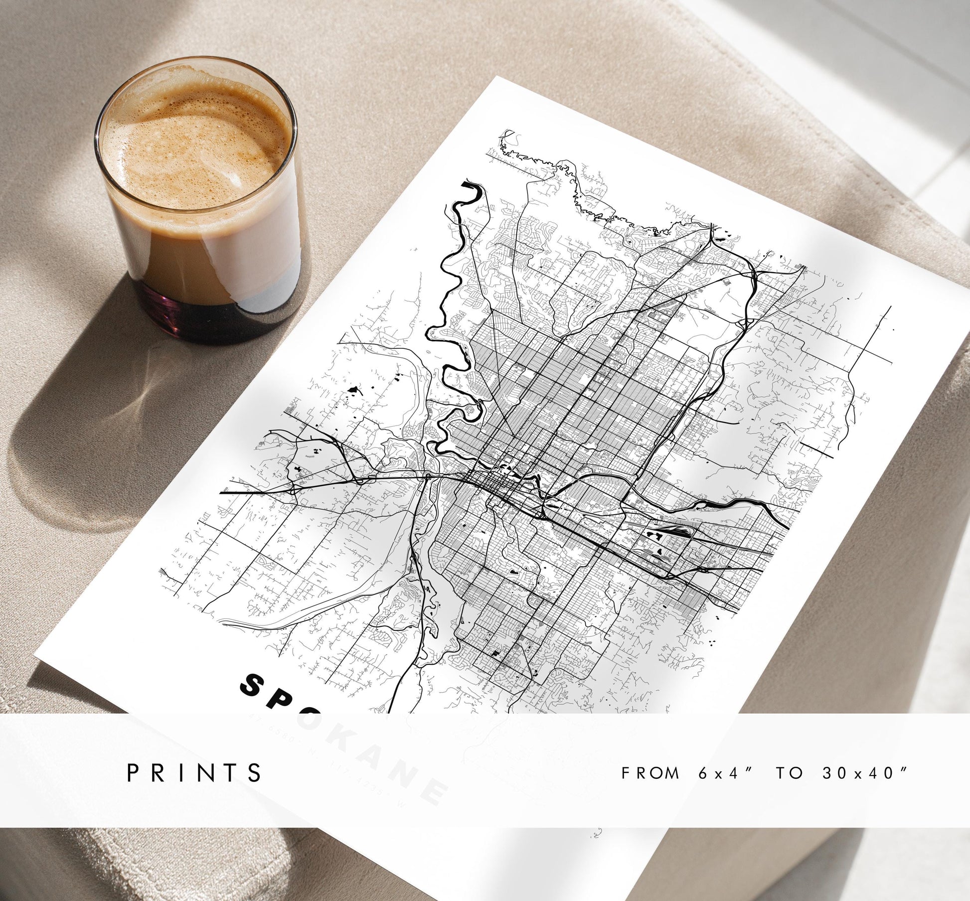 Spokane Map Print - City Map Poster - Map Art - USA City Maps - Spokane Print - Spokane Poster - Minimalist City Map - Washington