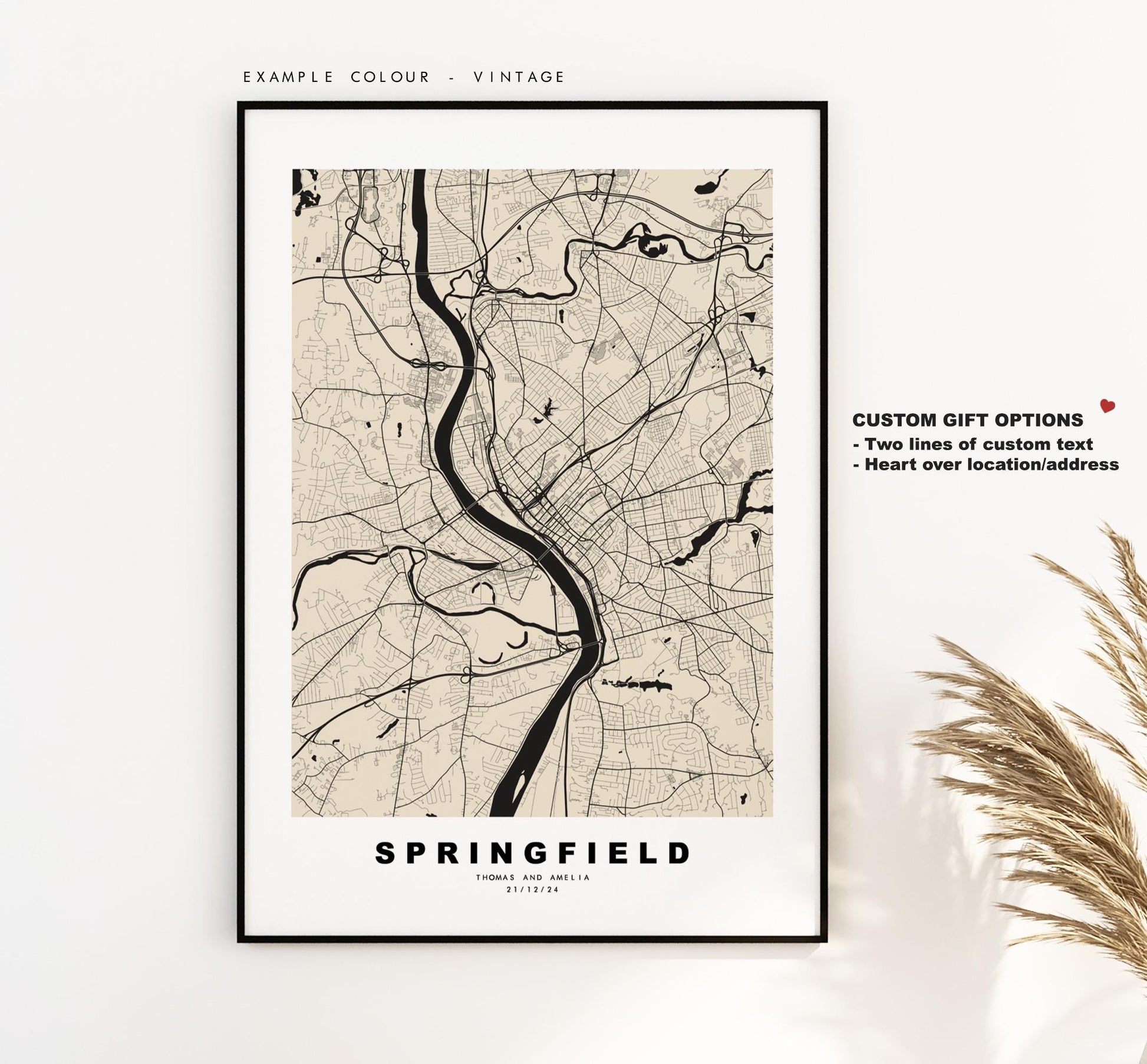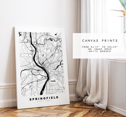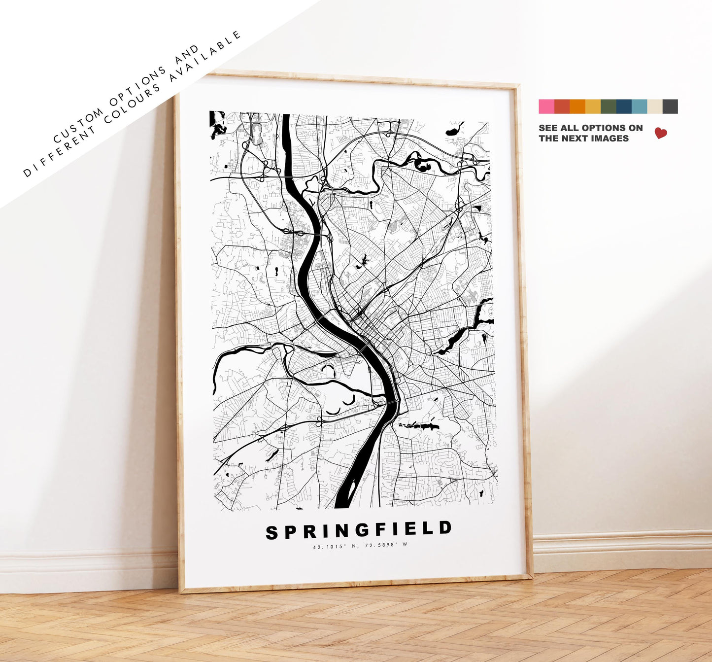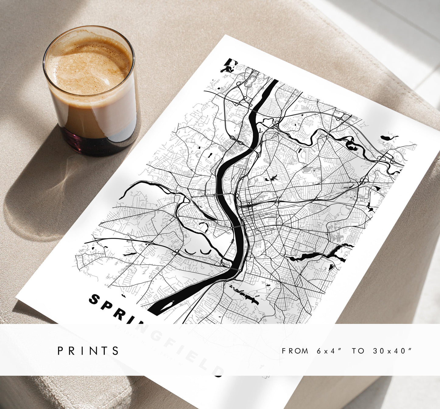 Springfield Map Print (MA) - City Map Poster - Map Art - USA City Maps - Springfield Print - Poster - Minimalist City Map - Massachusetts