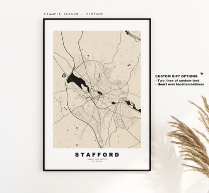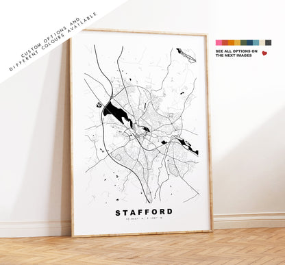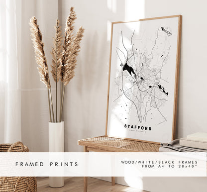Stafford Map Print - Minimalist City Map Poster - Map Art - UK - Stafford Print - Stafford Poster - Different Colours Available