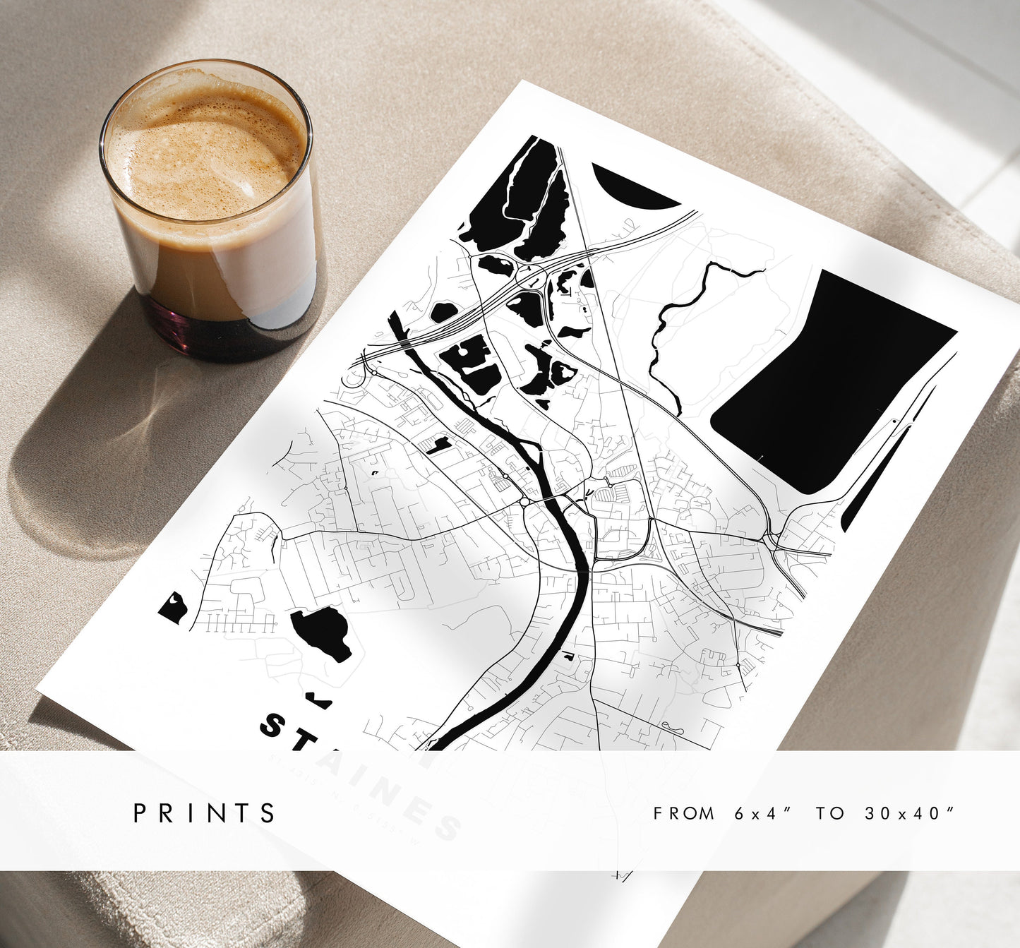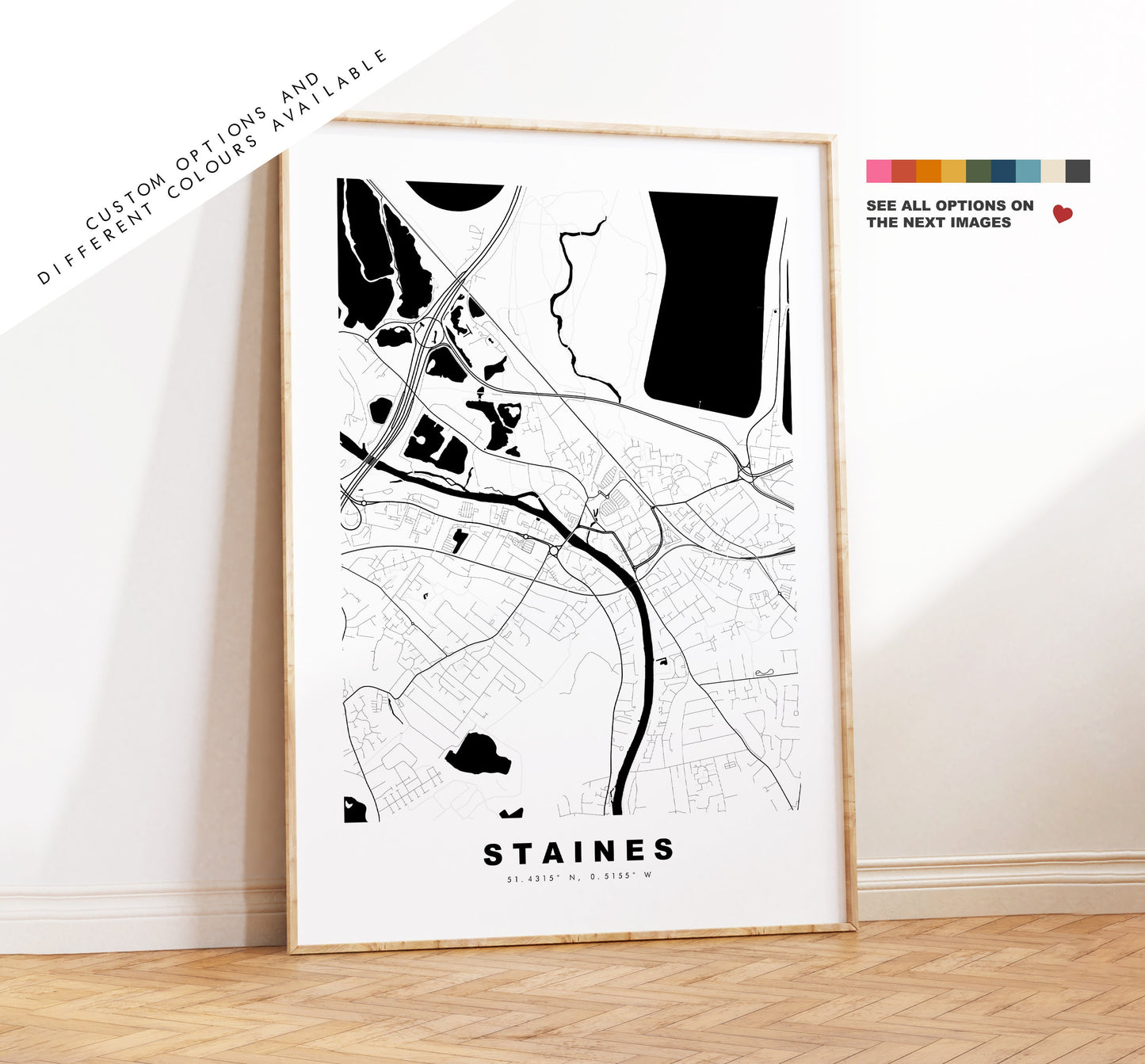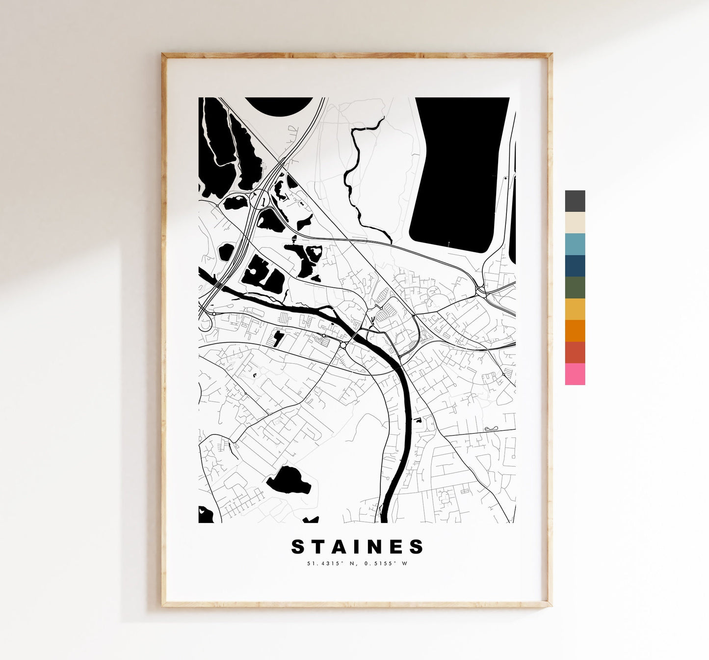 Staines Map Print - Minimalist City Map Poster - Map Art - London, UK - Staines Print - Staines Poster - Different Colours Available
