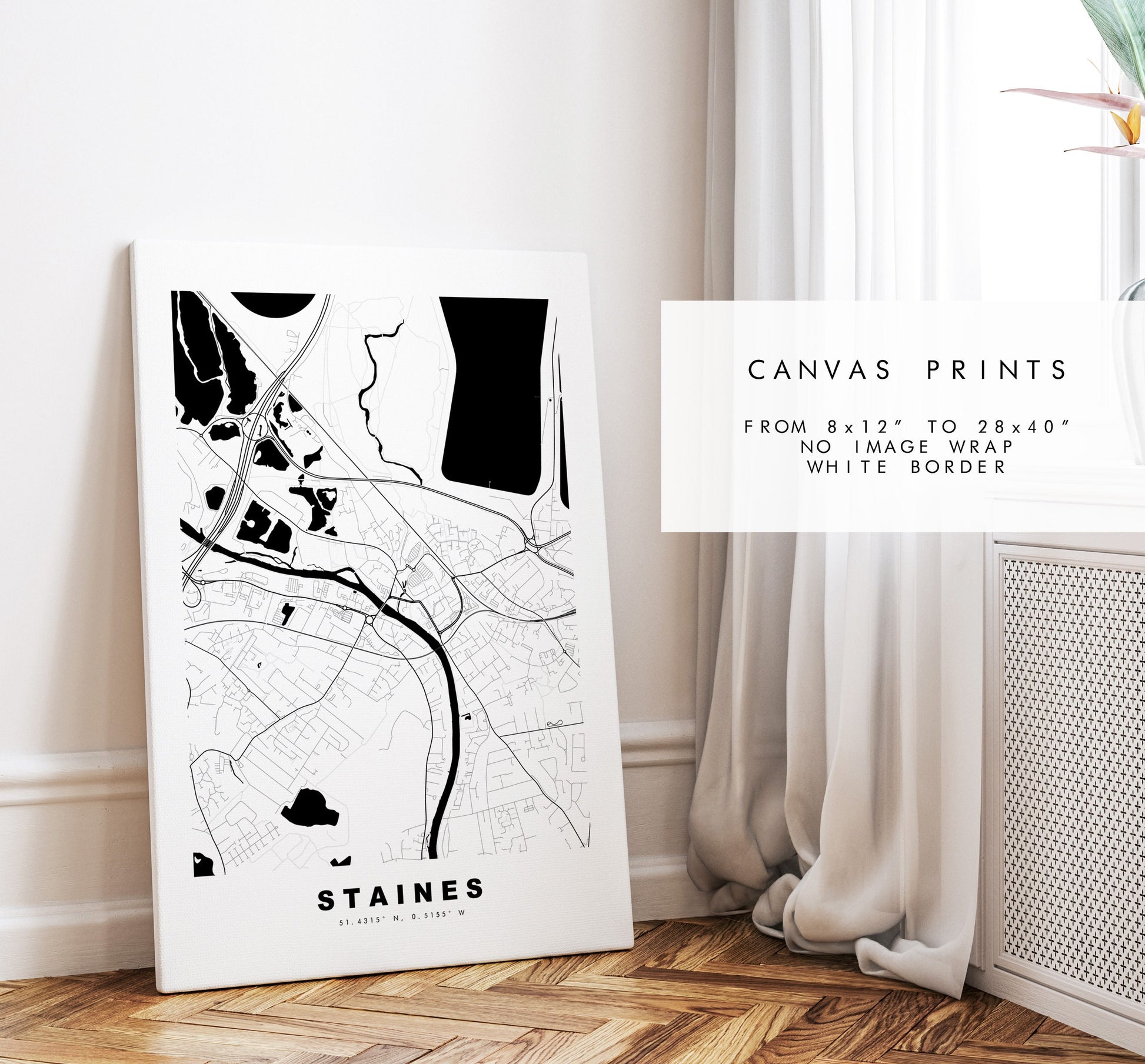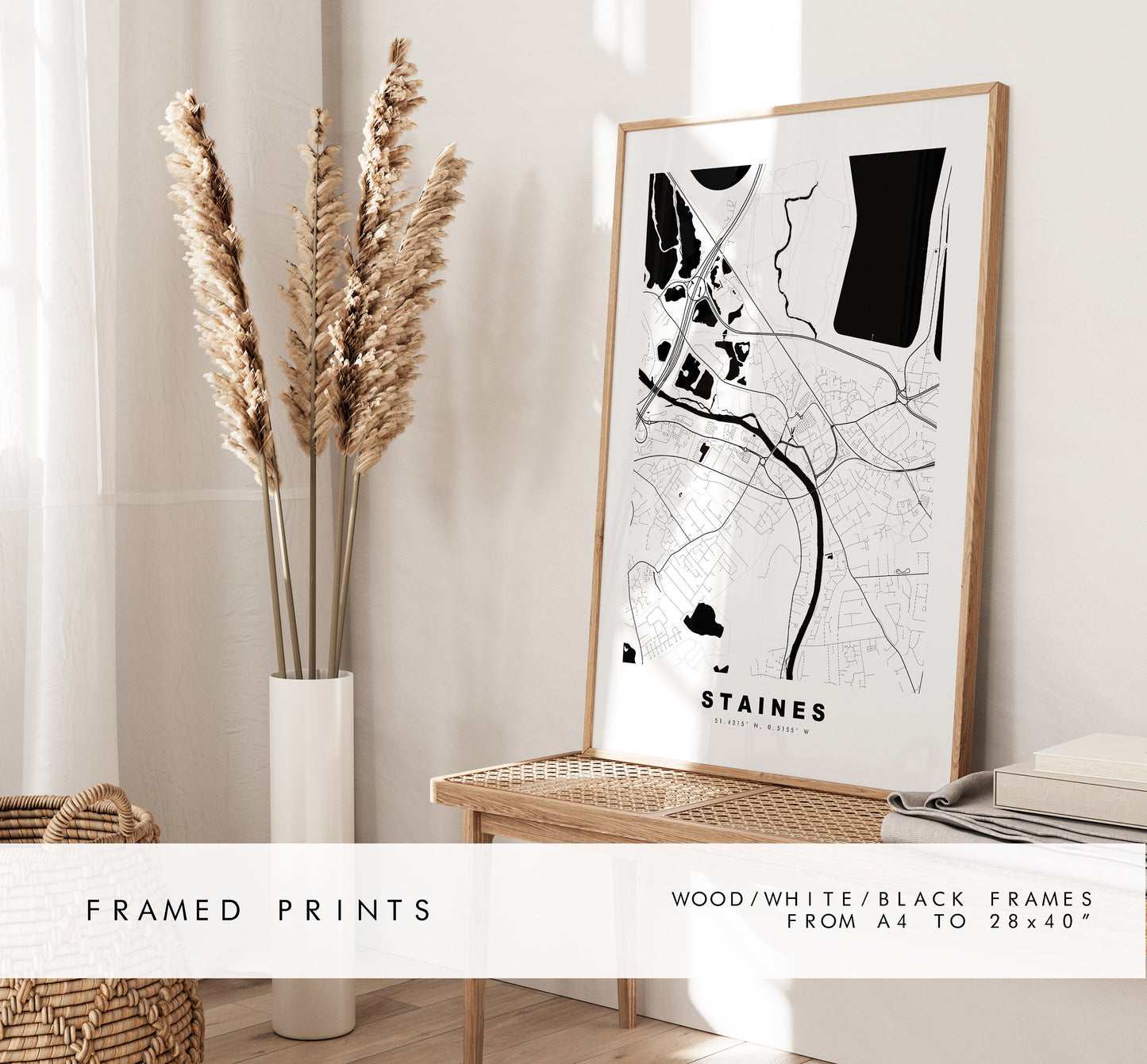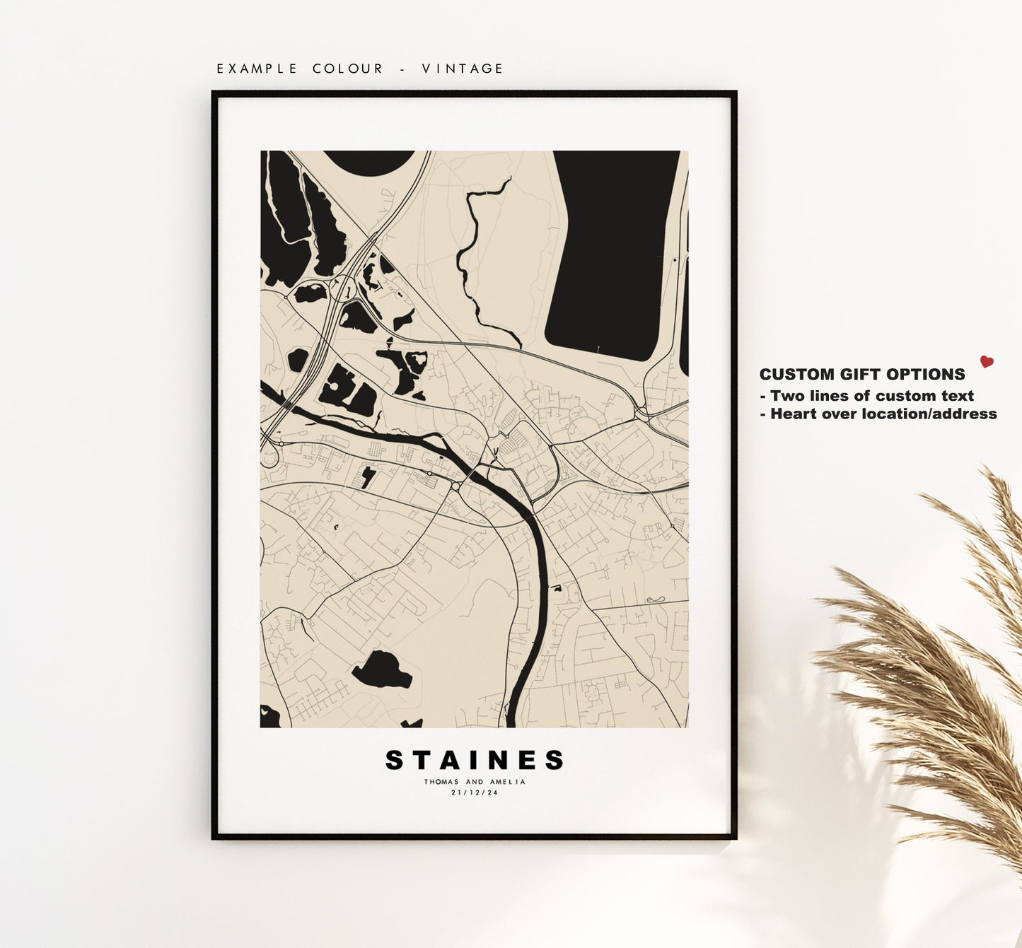Staines Map Print - Minimalist City Map Poster - Map Art - London, UK - Staines Print - Staines Poster - Different Colours Available