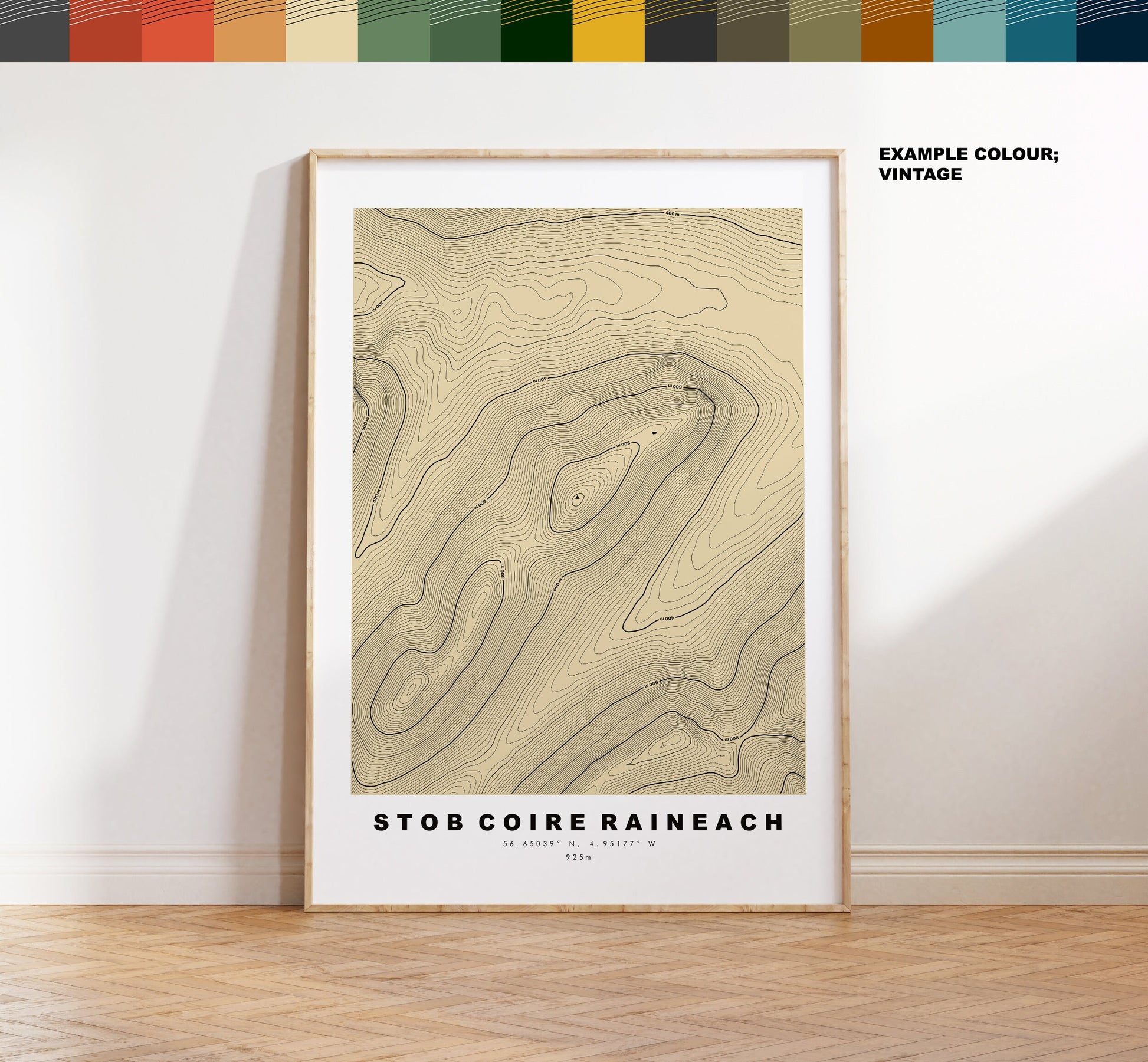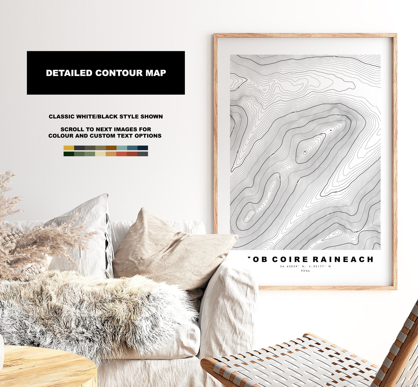 Contour map in a minimalist style, available in classic white/black or in a choice of map colours (see listing images). These contour maps are very detailed, with height markers at 200m intervals and the summit marked where possible - so the larger size the better!