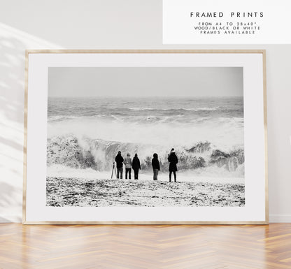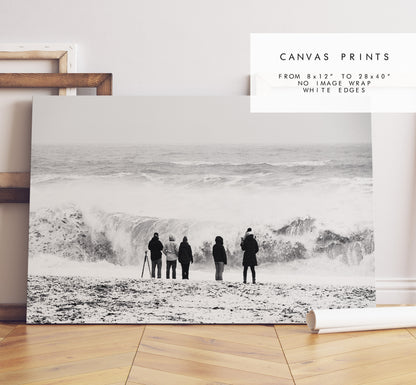 Stormy Seas - Iceland Photography Print - Iceland Wall Art - Iceland Poster - Black and White Photography - Landscape - People - Seascape