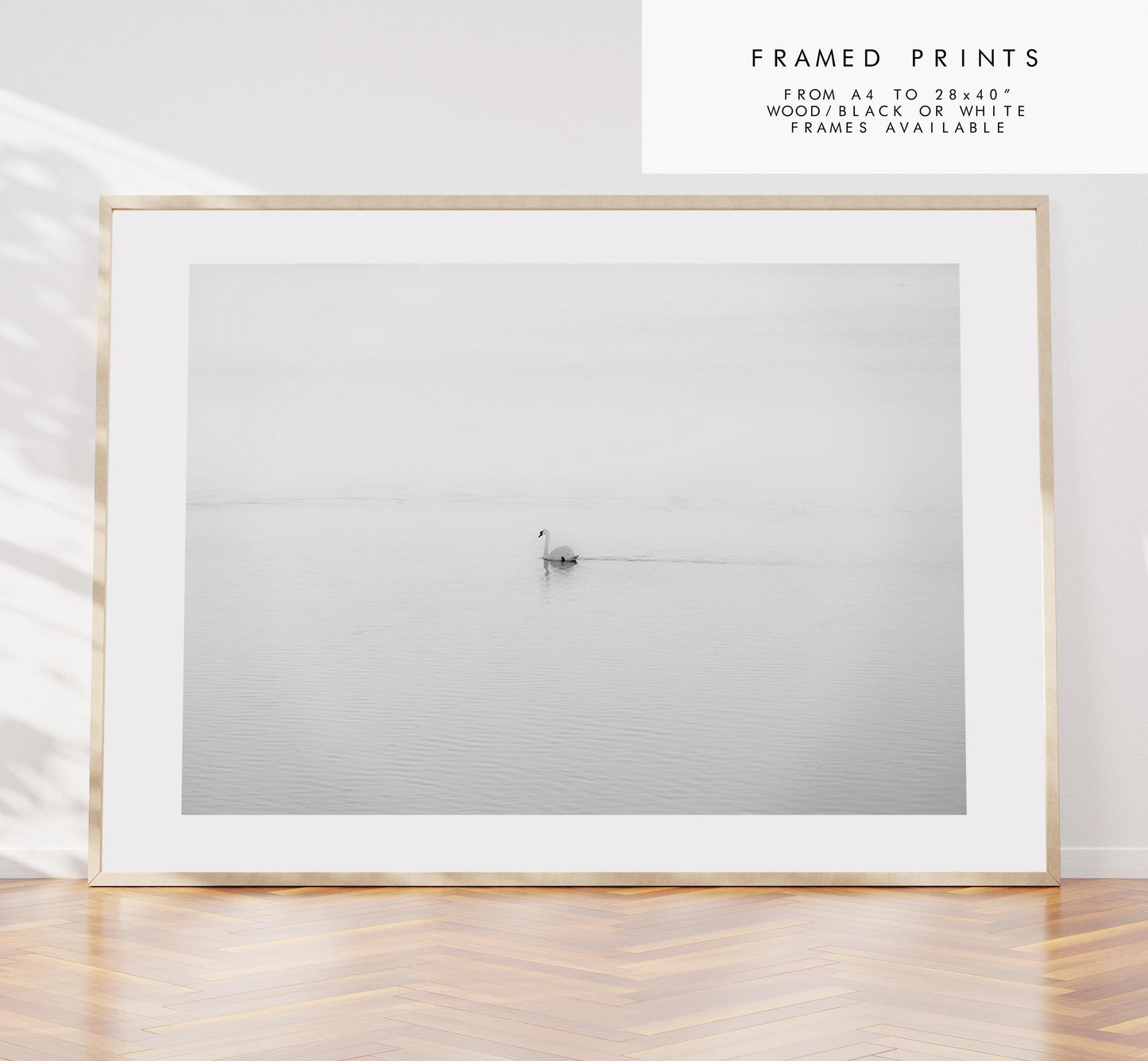 Swan Black and White Photography Print - Hampshire Photography Prints - Wall Art - Frame and Canvas Options - Landscape - UK