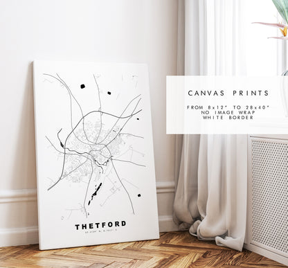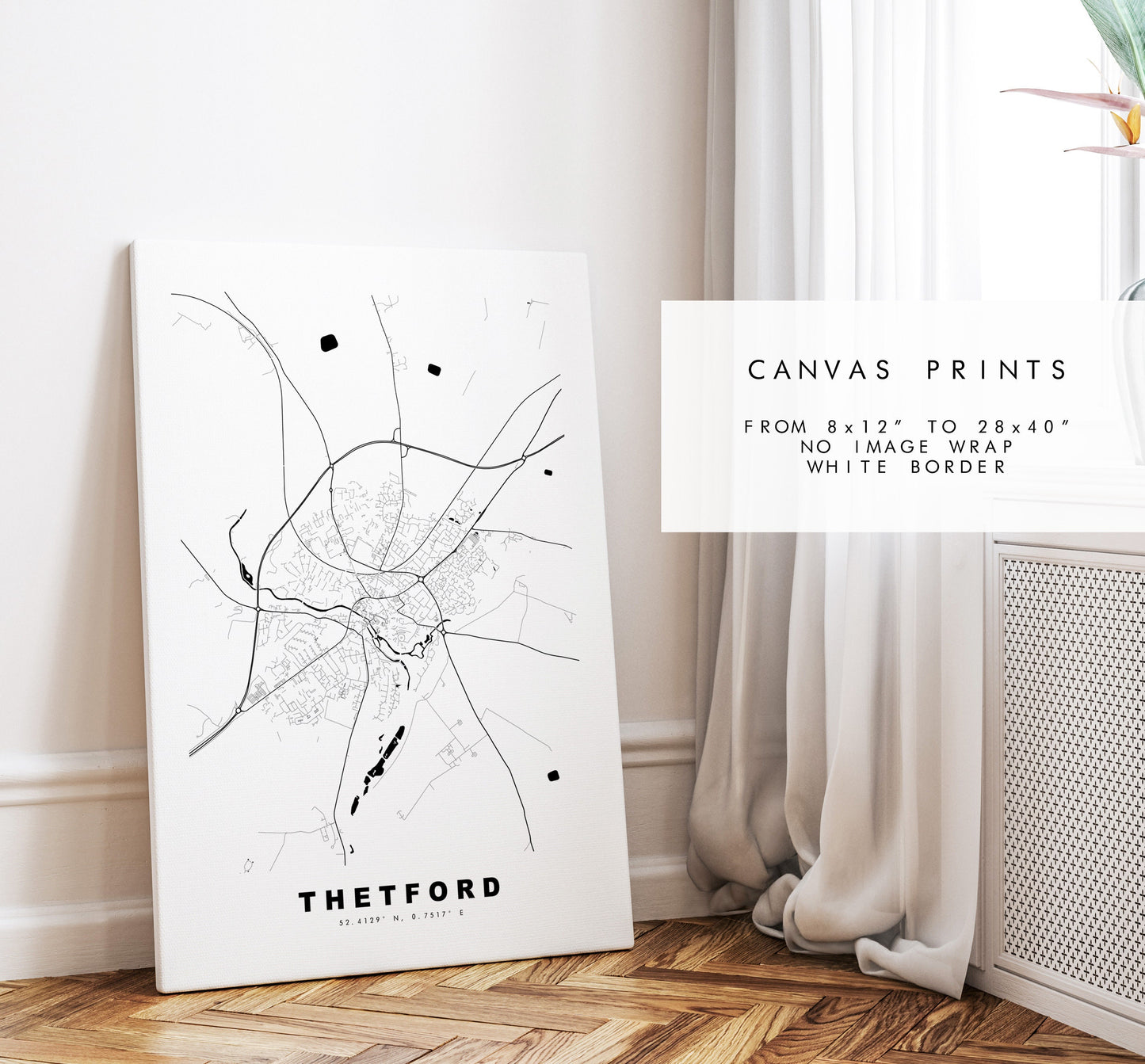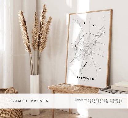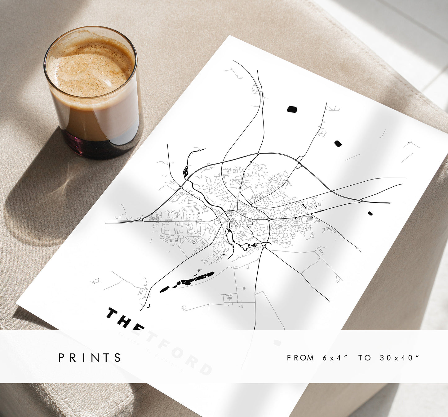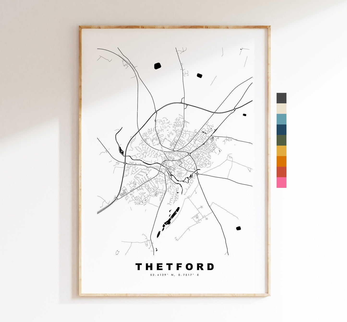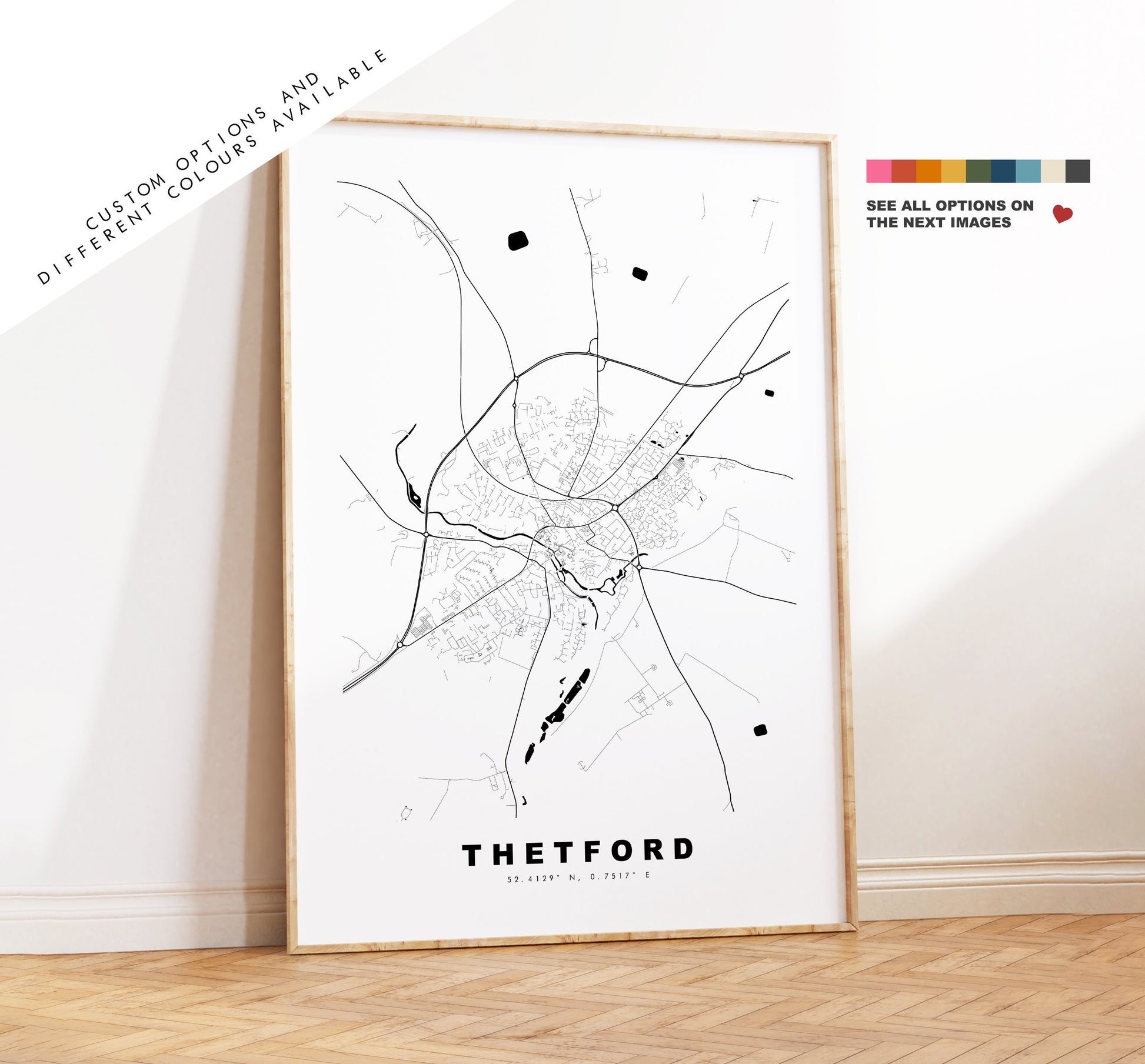 Thetford Map Print - Minimalist City Map Poster - Map Art - UK - Thetford Print - Thetford Poster - Different Colours Available