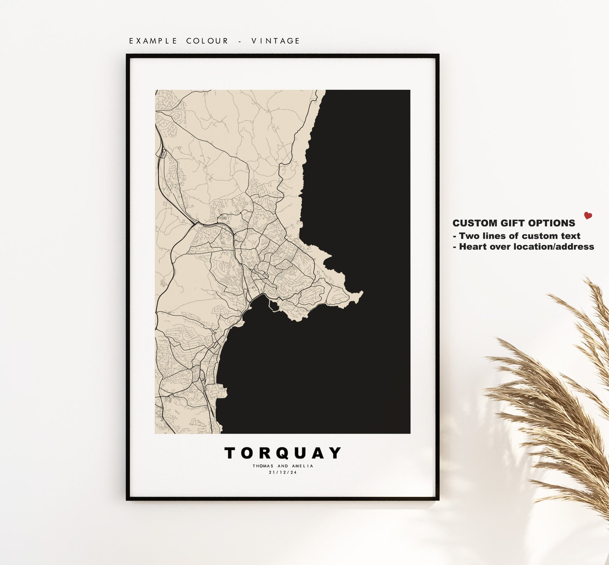 Torquay Map Print - Minimalist City Map Poster - Map Art - UK - Torquay Print - Torquay Poster - Different Colours Available