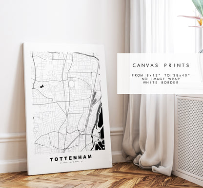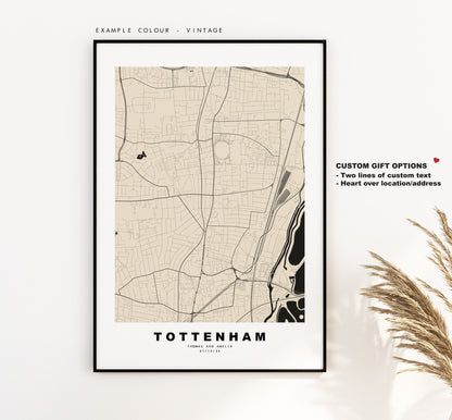 Tottenham Map Print - Minimalist City Map Poster - Map Art - London, UK - Tottenham Print - Poster - Different Colours Available