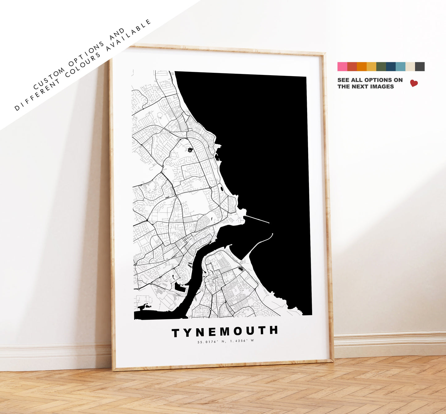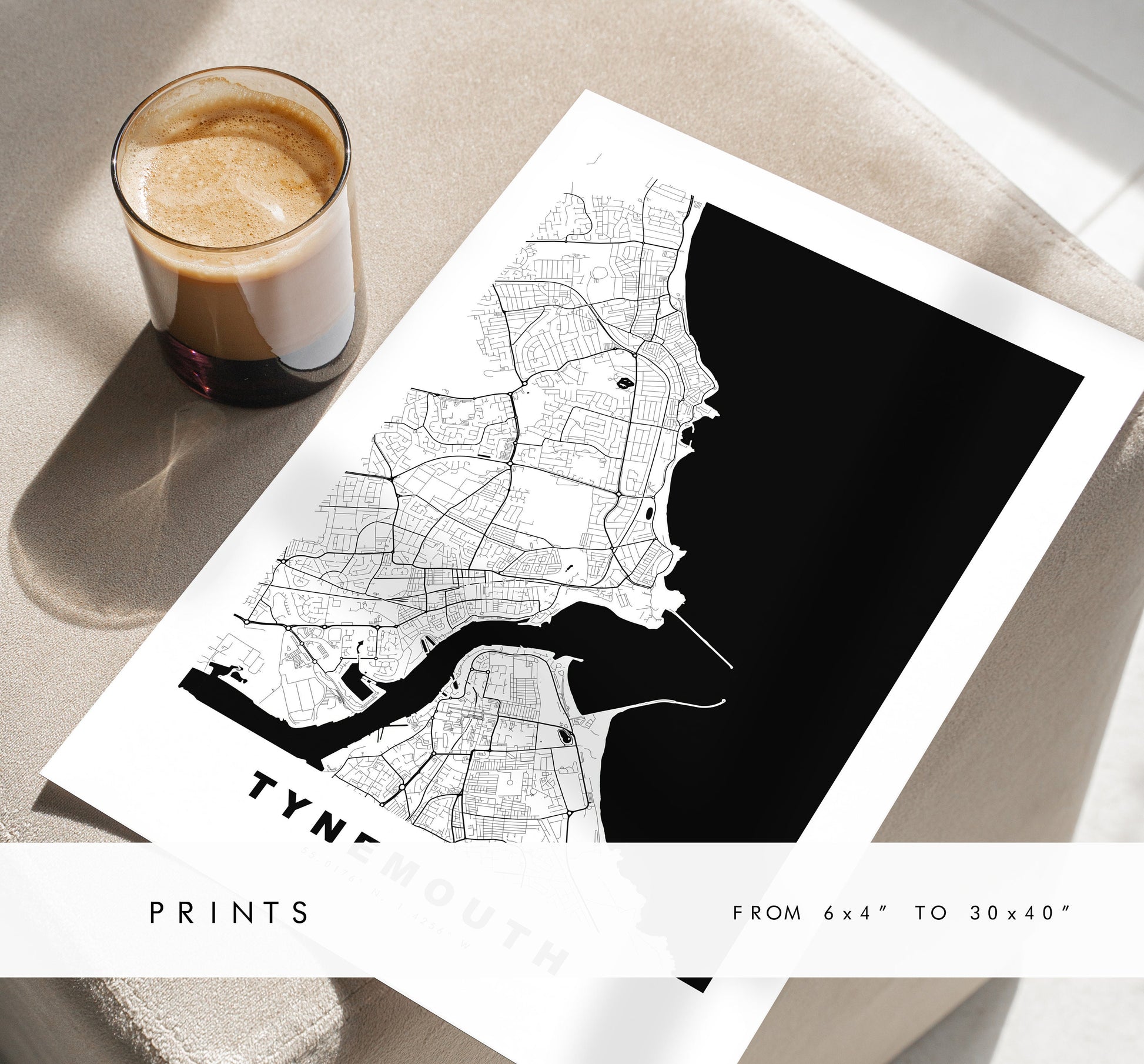 Tynemouth Map Print - Minimalist City Map Poster - Map Art - UK - Tynemouth Print - Tynemouth Poster - Different Colours Available