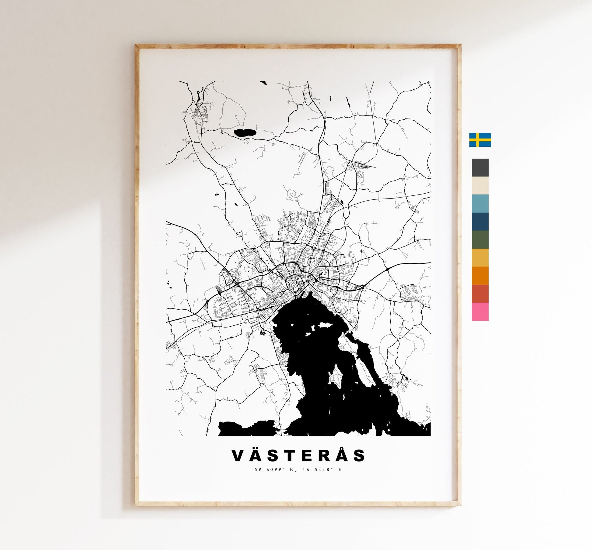 Vasteras Map Print - City Map Poster - Map Wall Art - Sweden City Maps - Vรคsterรฅs Print - Vรคsterรฅs Poster - Minimalist City Map - Sweden