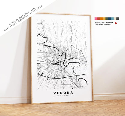 Verona Map Print - City Map Poster - Map Art - Map Wall Art - Italy City Maps - Verona Print - Verona Poster - Minimalist City Map