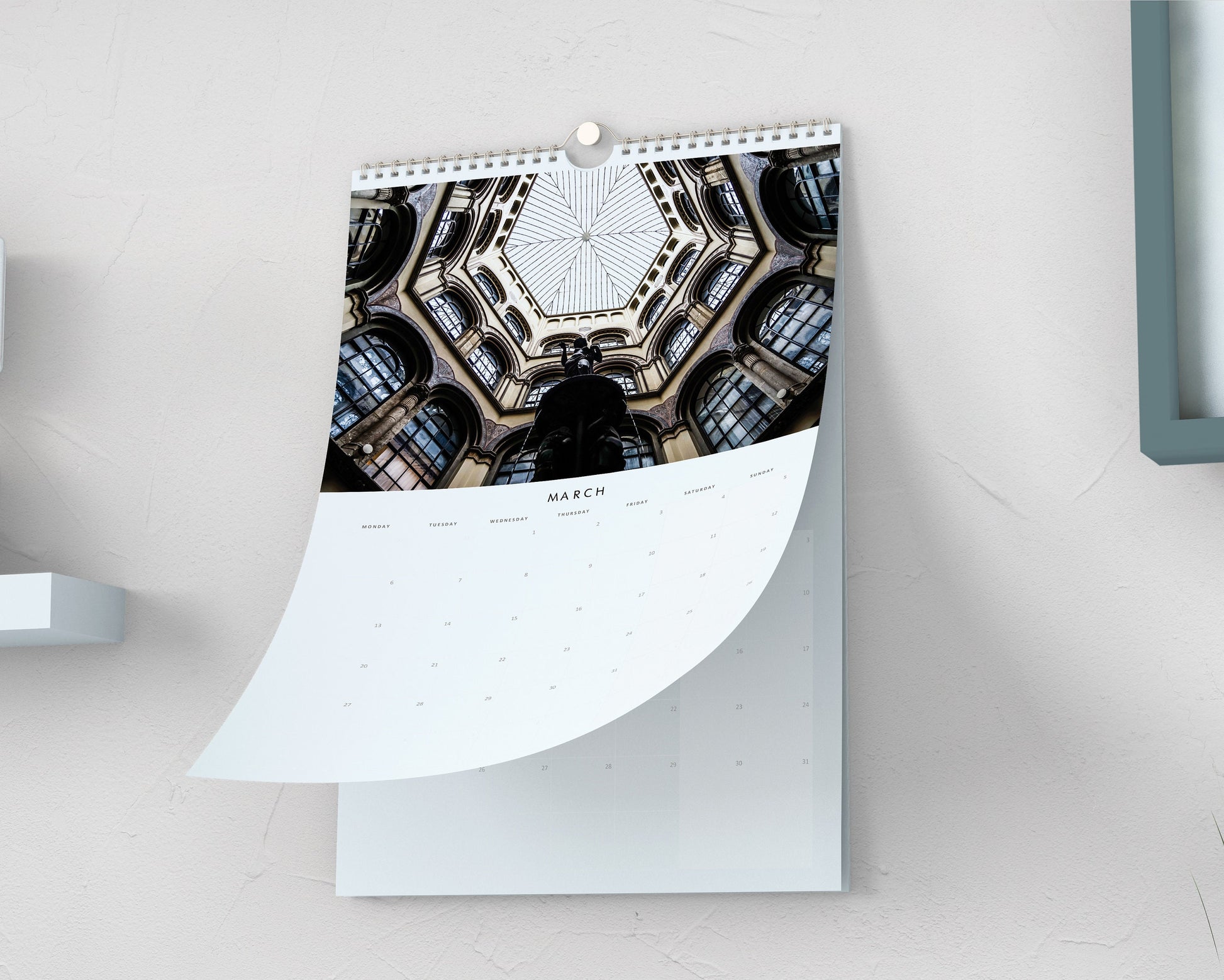๐๐๐ฒ๐บย ๐๐ฒ๐๐ฎ๐ถ๐น๐;Each calendar consists of 13 pages including 12 full colour 250gsm semi-gloss pages, one for each month of course. Our wall calendars are printed portrait before being binded with a 6.9mm white ring wire and finished with a wall hanger insert.