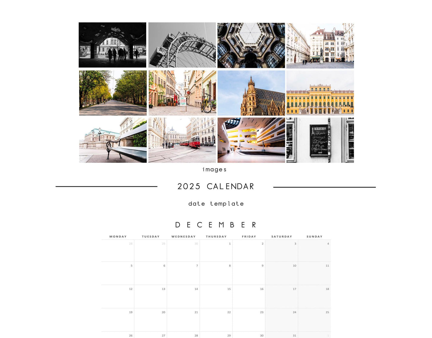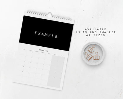 Each month features a wide image (see examples) above our modern, minimalist date template design, which has space for small notes under each date. All of our calendars are made to order and not mass produced.