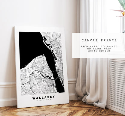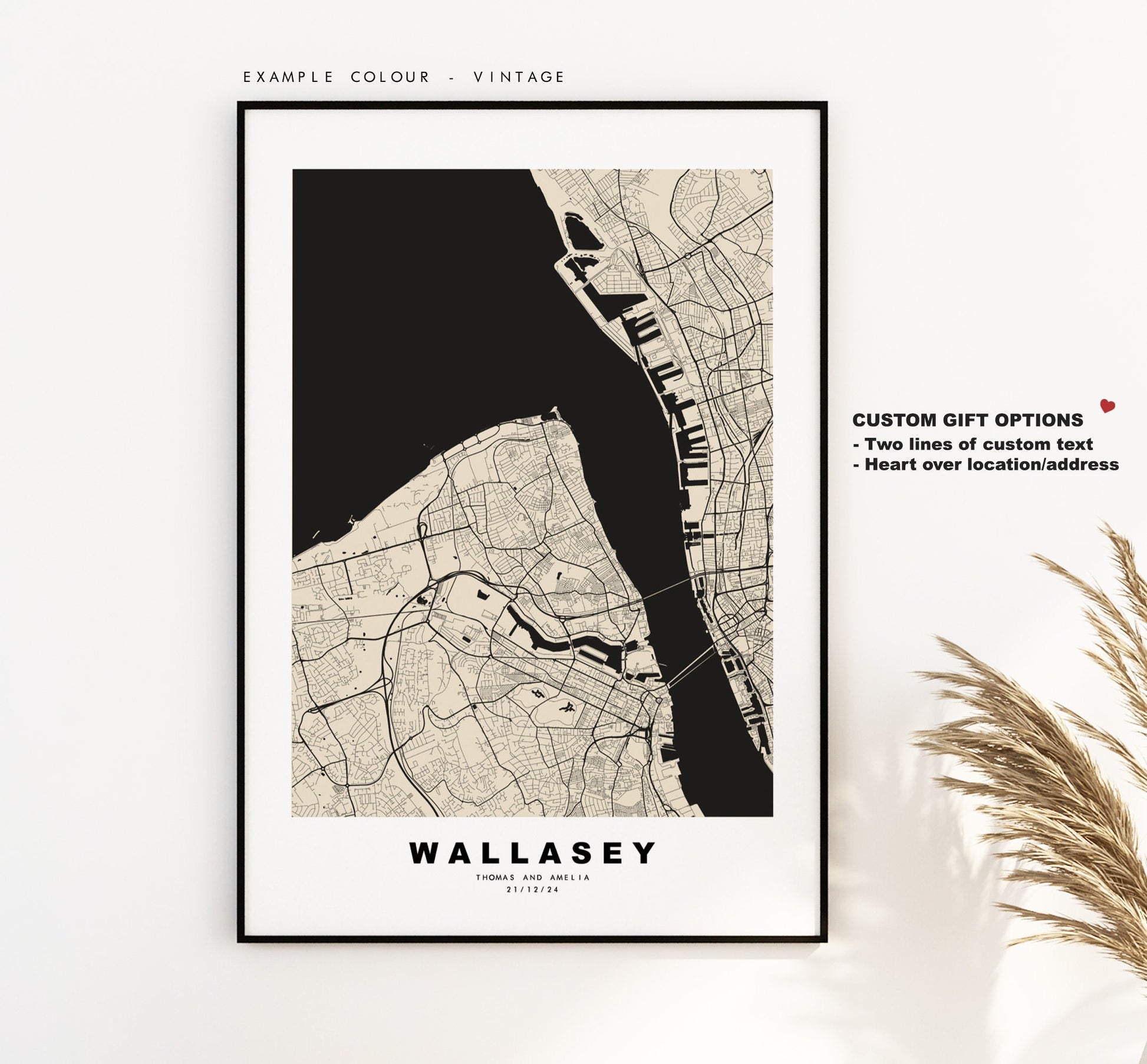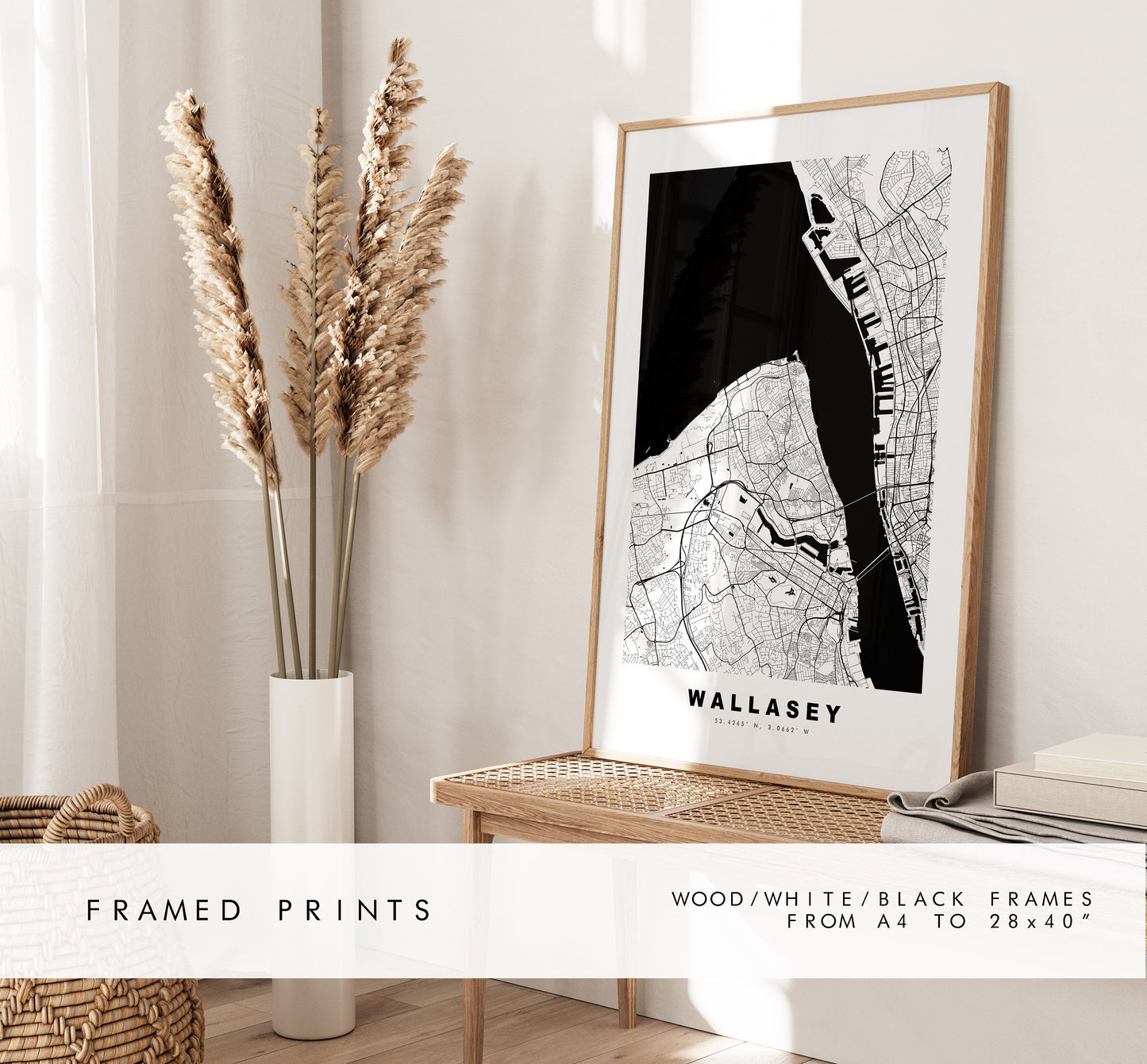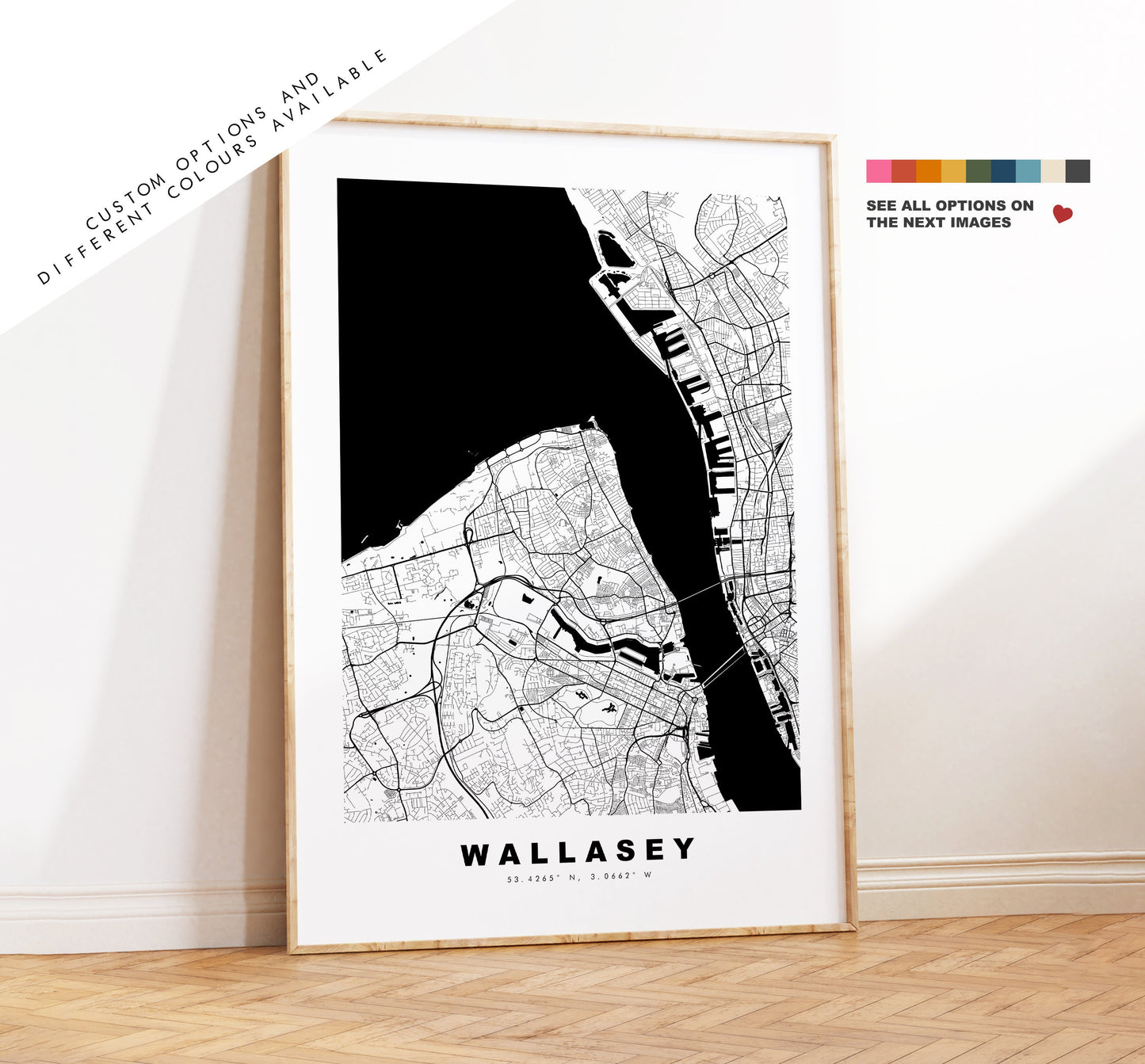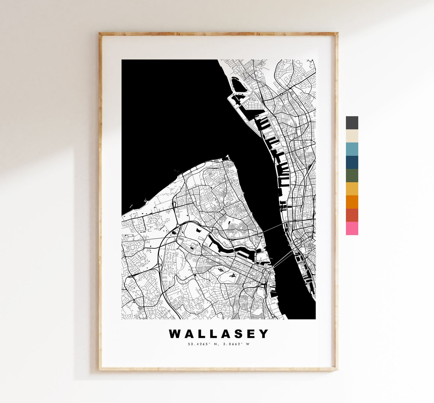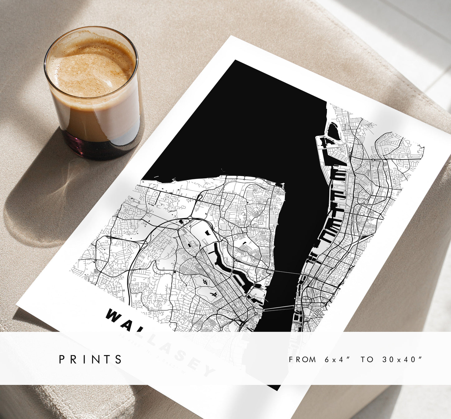 Wallasey Map Print - Minimalist City Map Poster - Map Art - UK - Wallasey Print - Wallasey Poster - Different Colours Available