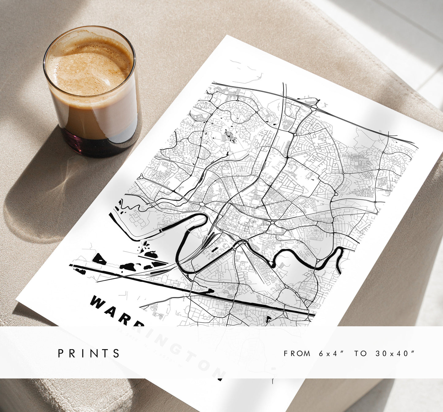 Warrington Map Print - Minimalist City Map Poster - Map Art - UK - Warrington Print - Warrington Poster - Different Colours Available