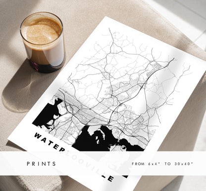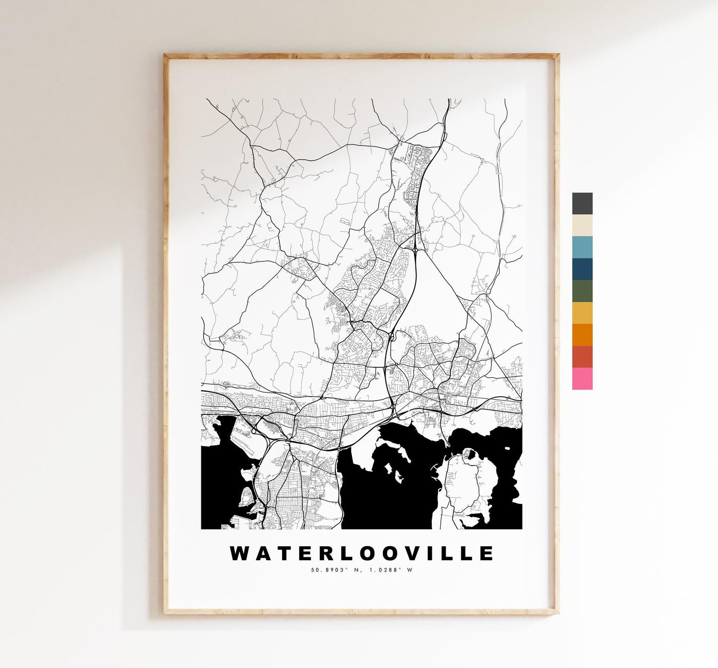 Waterlooville Map Print - Minimalist City Map Poster - Map Art - UK - Waterlooville Print - Hampshire - Different Colours Available