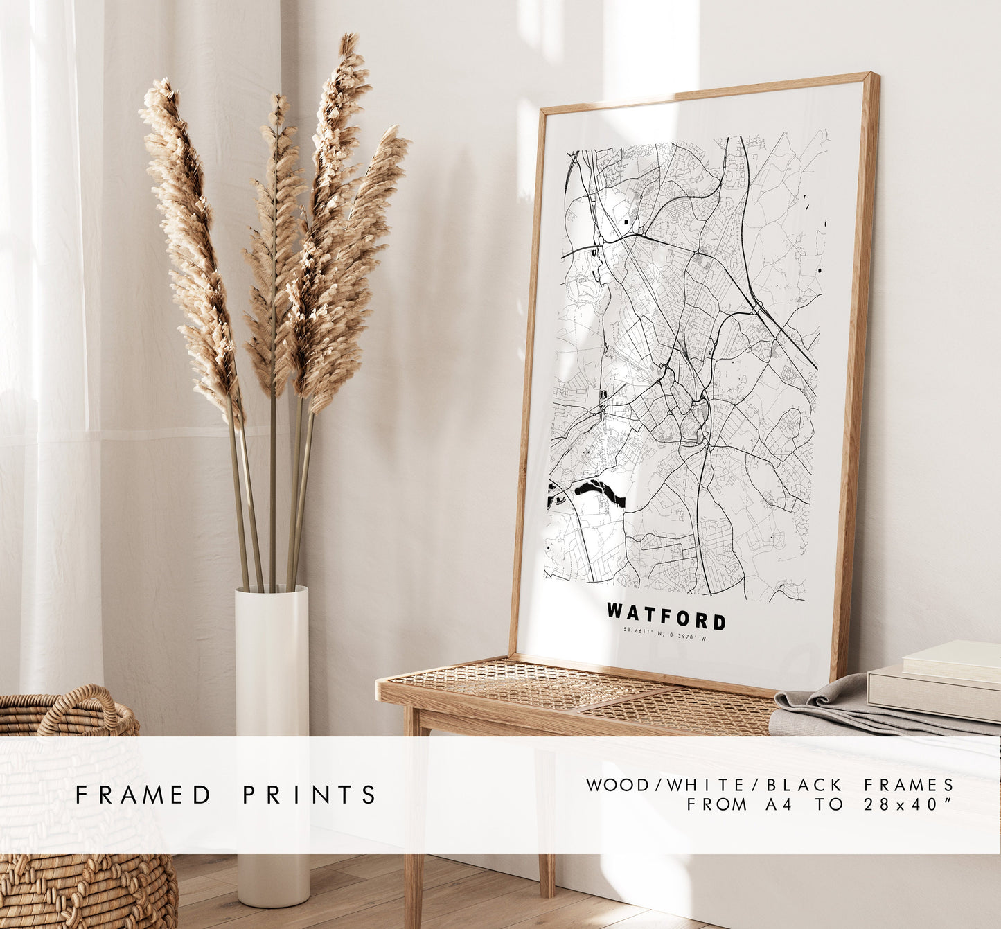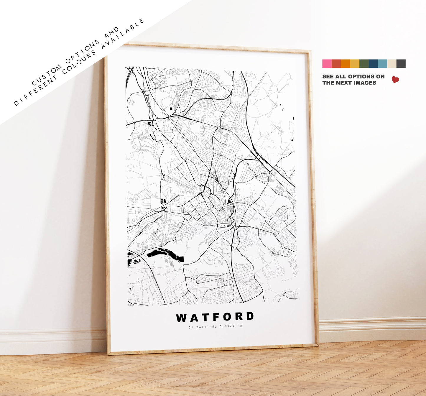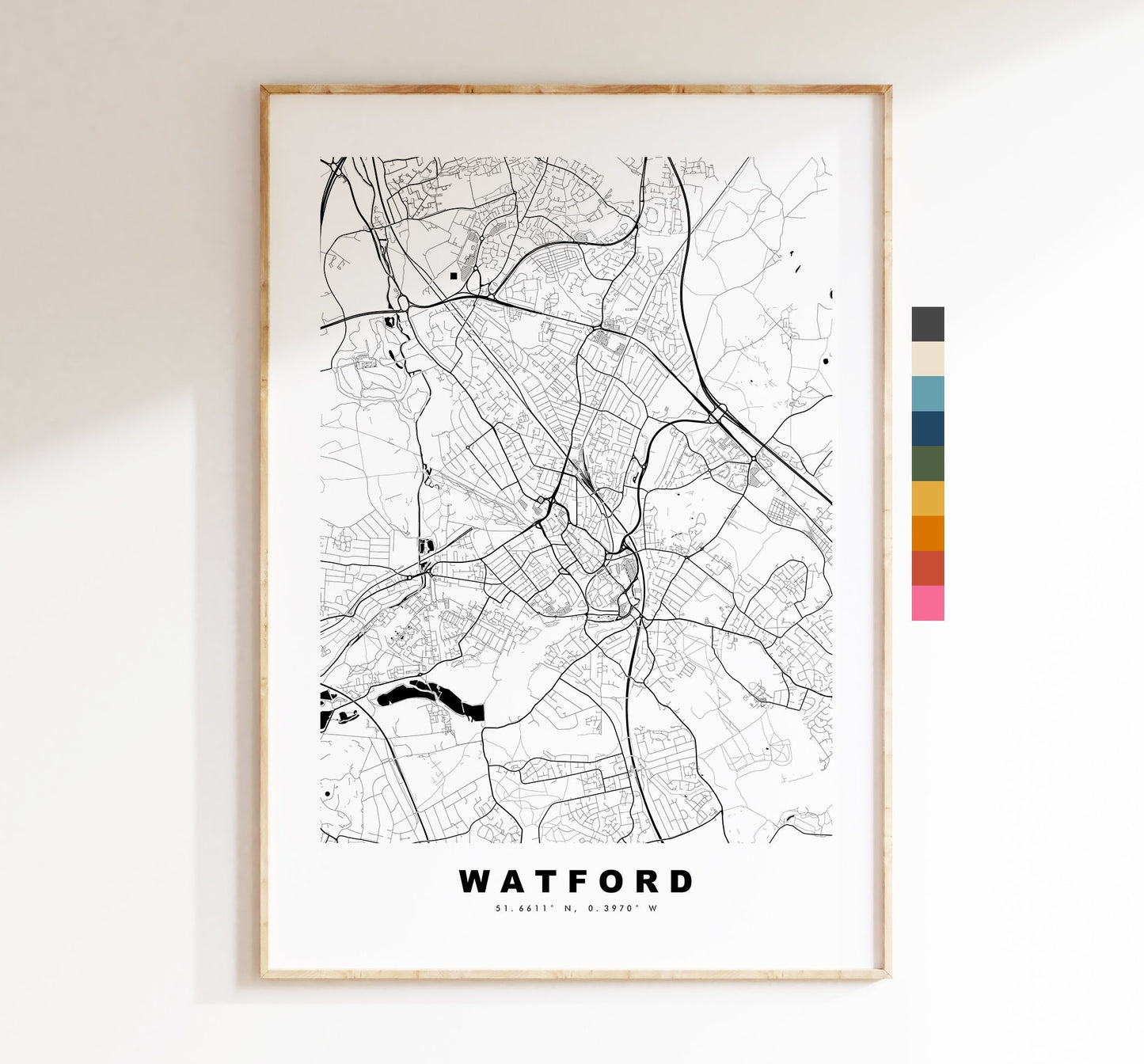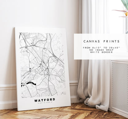 Watford Map Print - Minimalist City Map Poster - Map Art - London, UK - Watford Print - Watford Poster - Different Colours Available