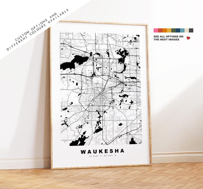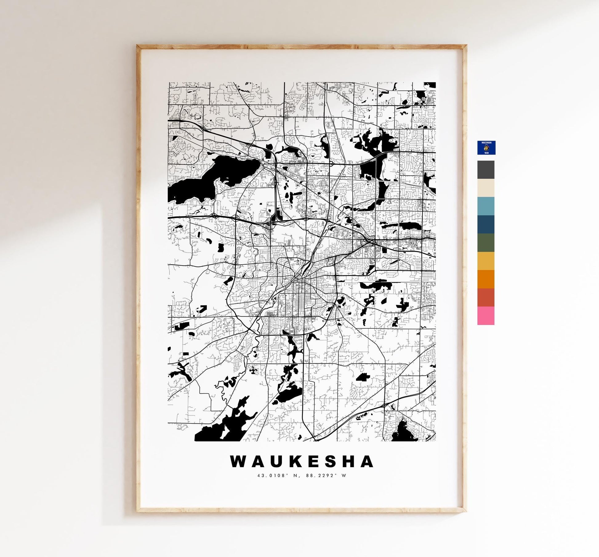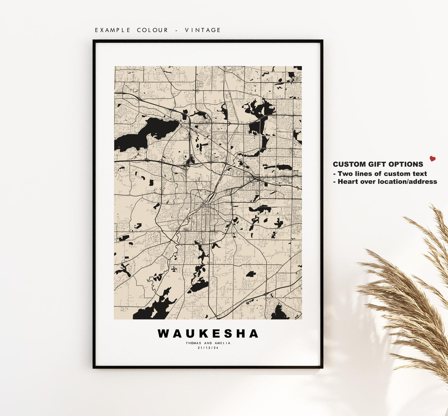 Waukesha Map Print - City Map Poster - Map Art - USA City Maps - Waukesha Print - Waukesha Poster - Minimalist City Map - Wisconsin