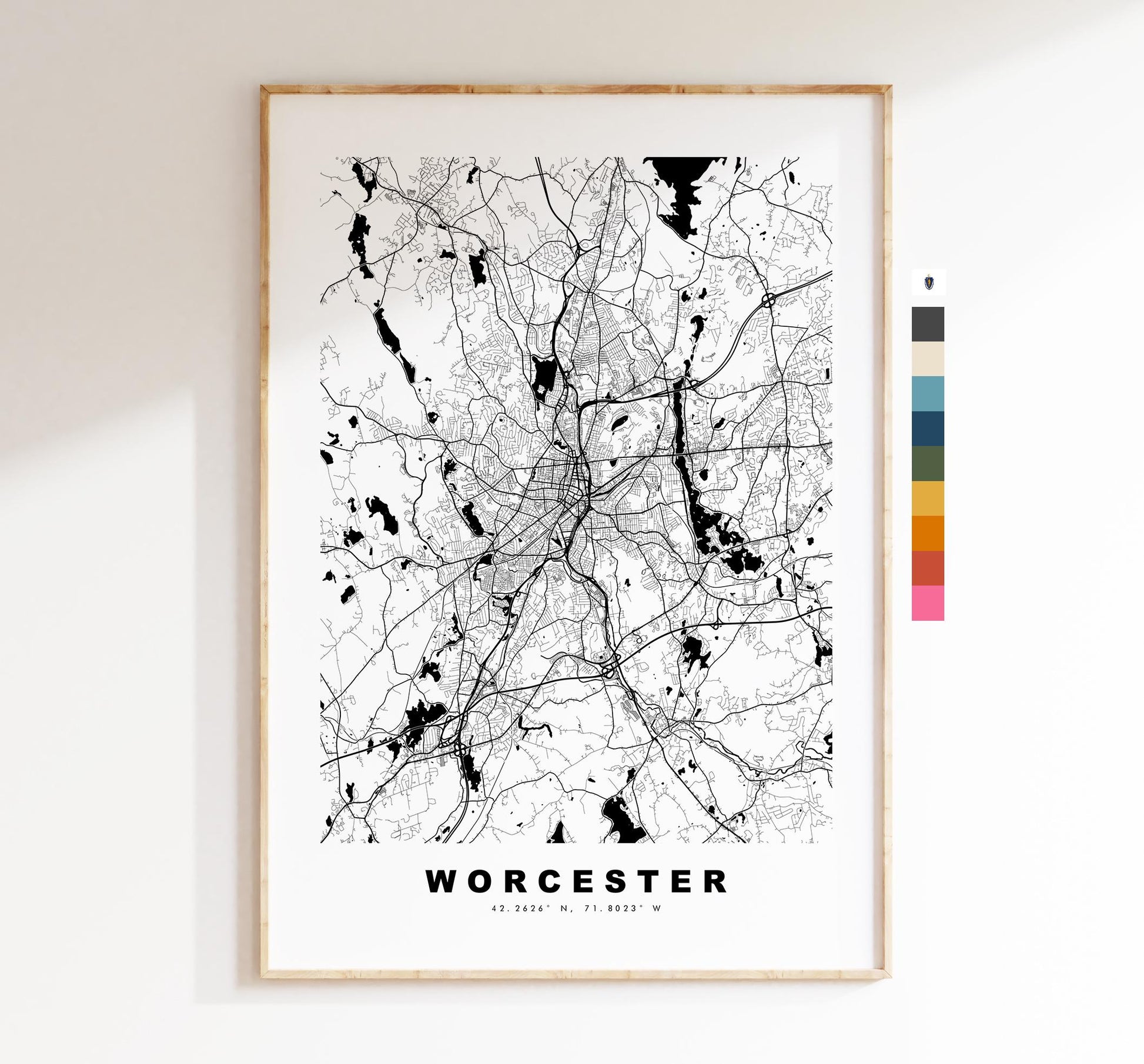 Worcester Map Print (Massachusetts) - City Map Poster - Map Art - USA City Maps - Print - Poster - Minimalist City Map - Massachusetts