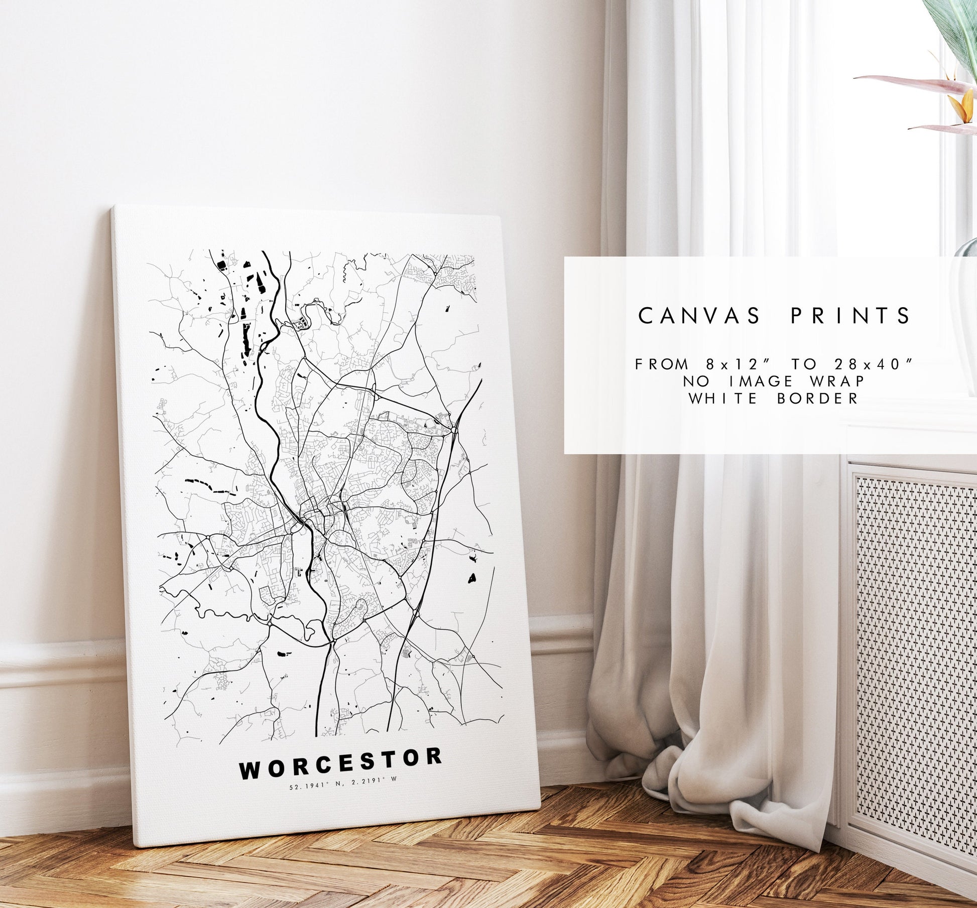Worcestor Map Print - Minimalist City Map Poster - Map Art - UK - Worcestor Print - Worcestor Poster - Different Colours Available