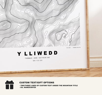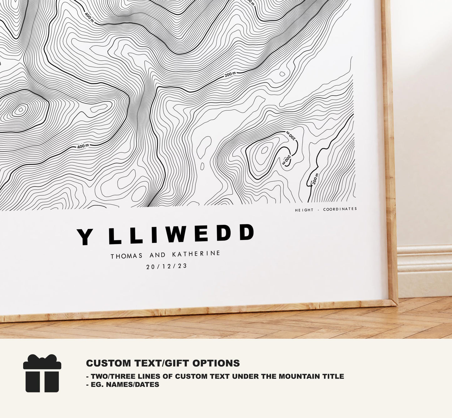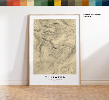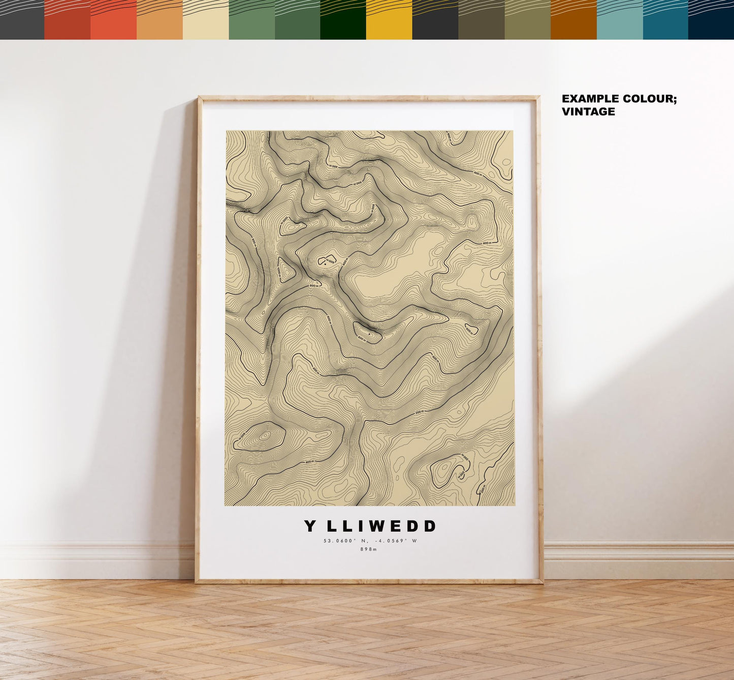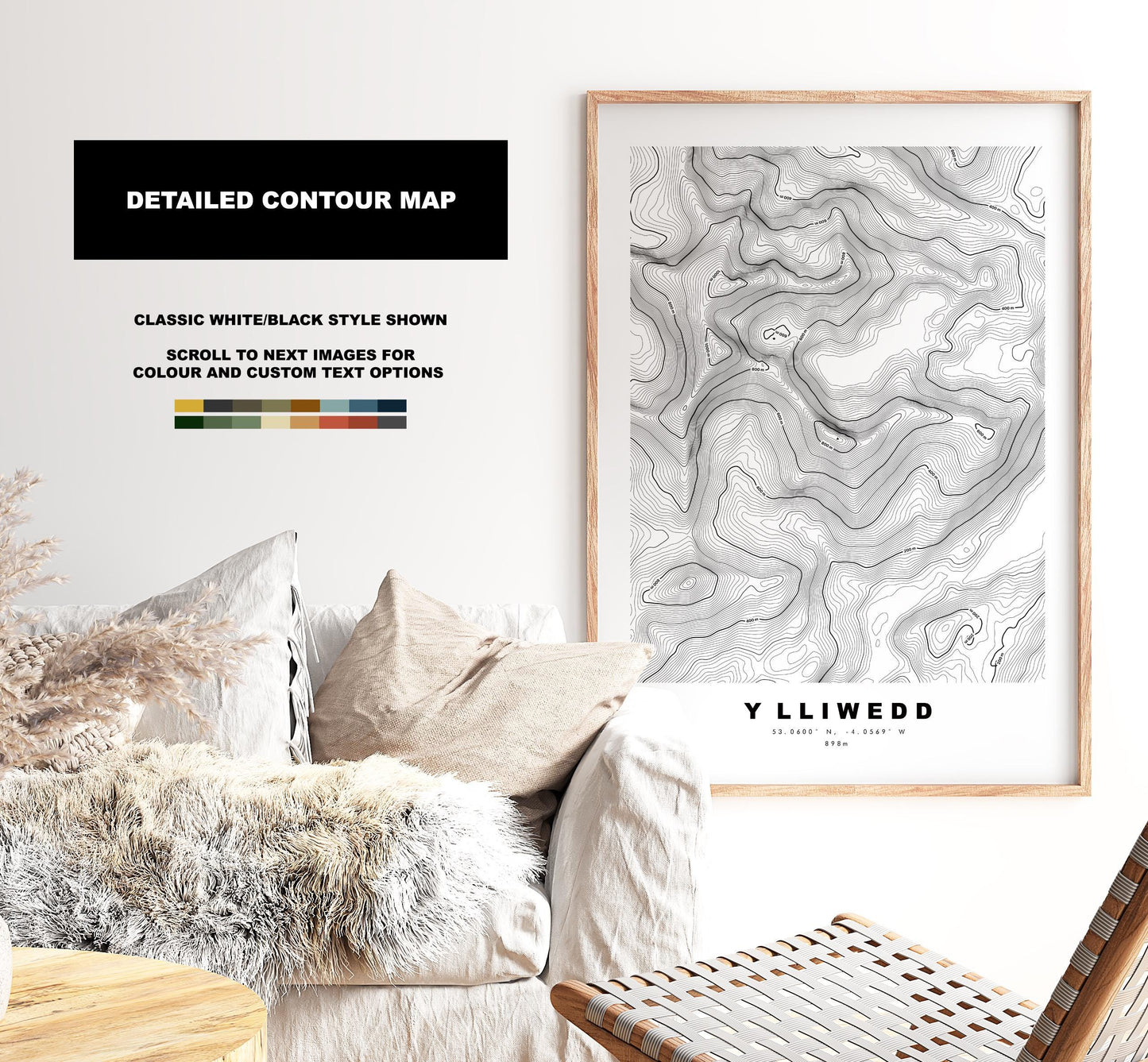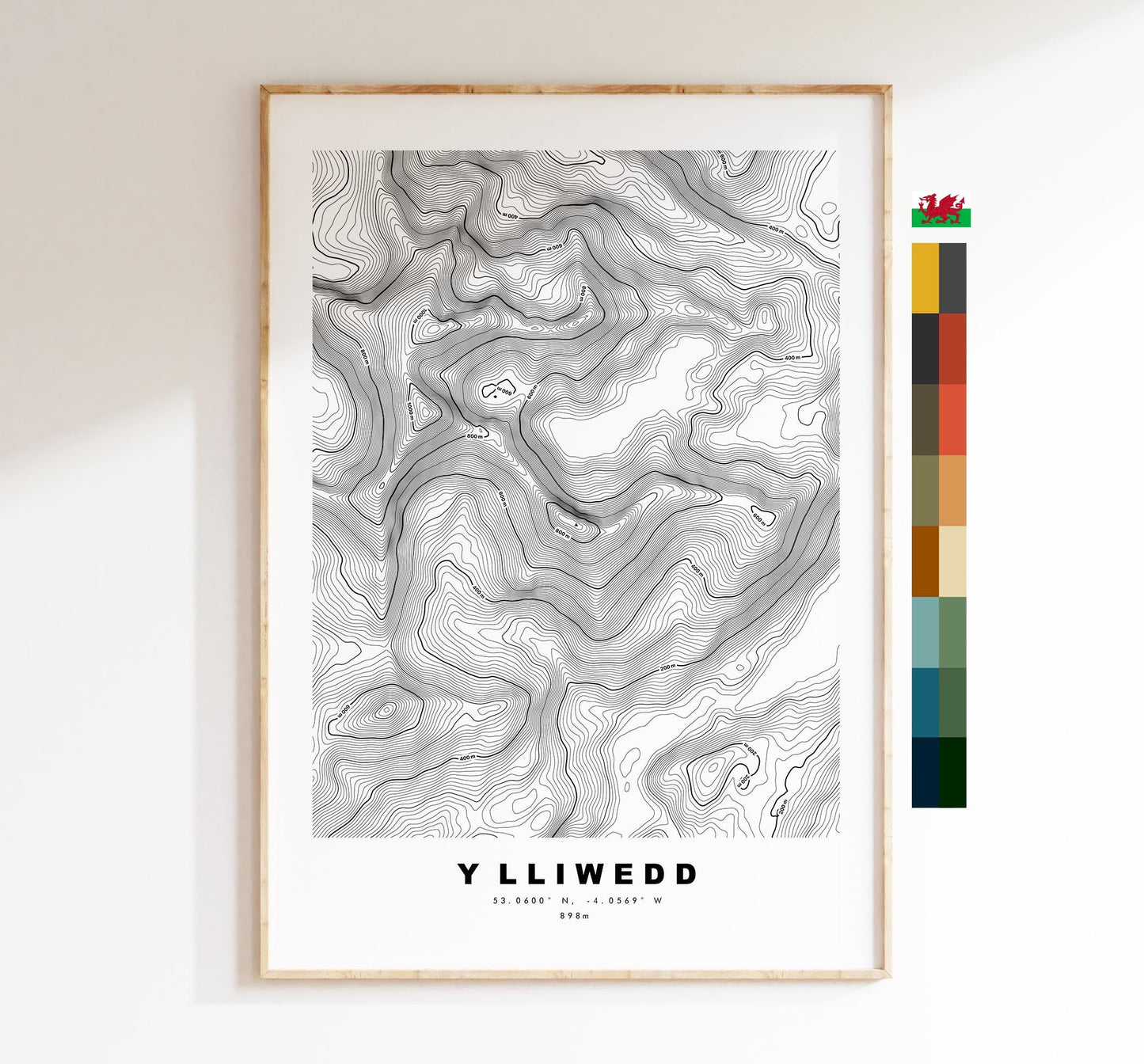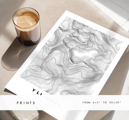 Y Lliwedd Print - Contour Map - Snowdonia - Wales - Topographic Map - Print - Poster - Wall Art - Y Lliwedd Poster - Gift - Topography