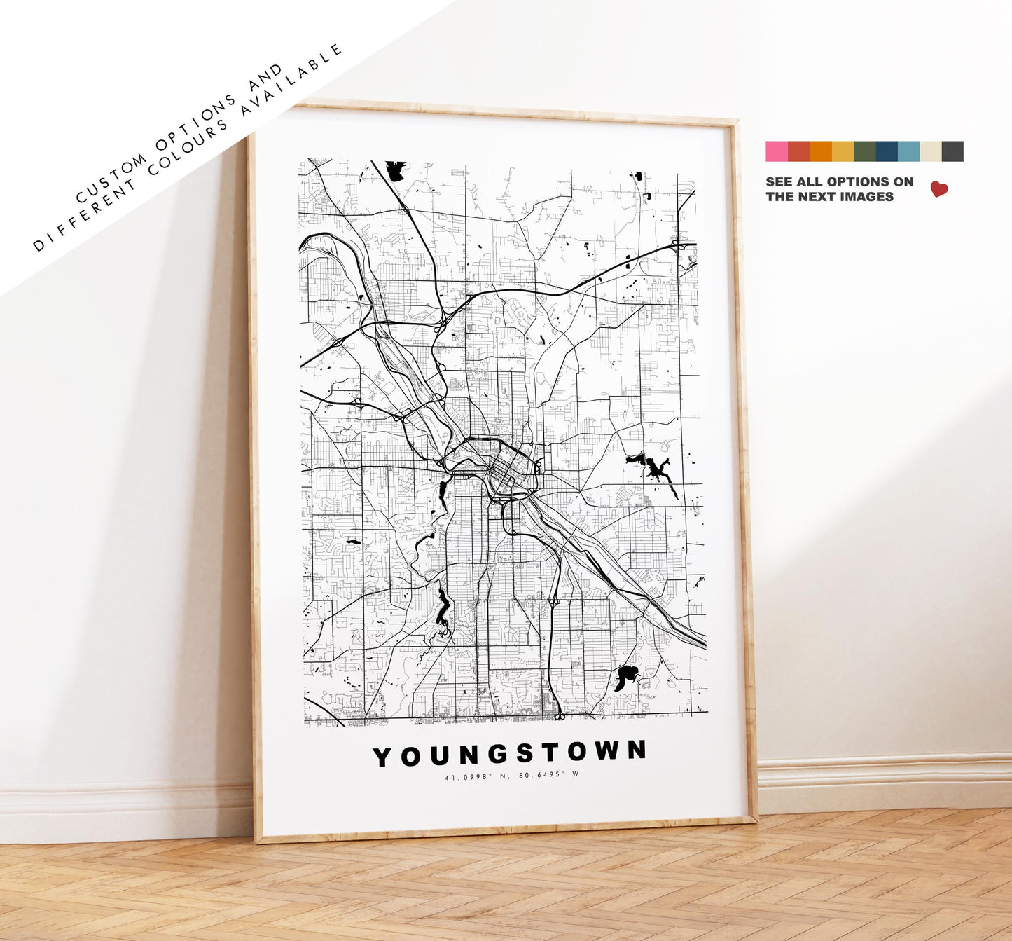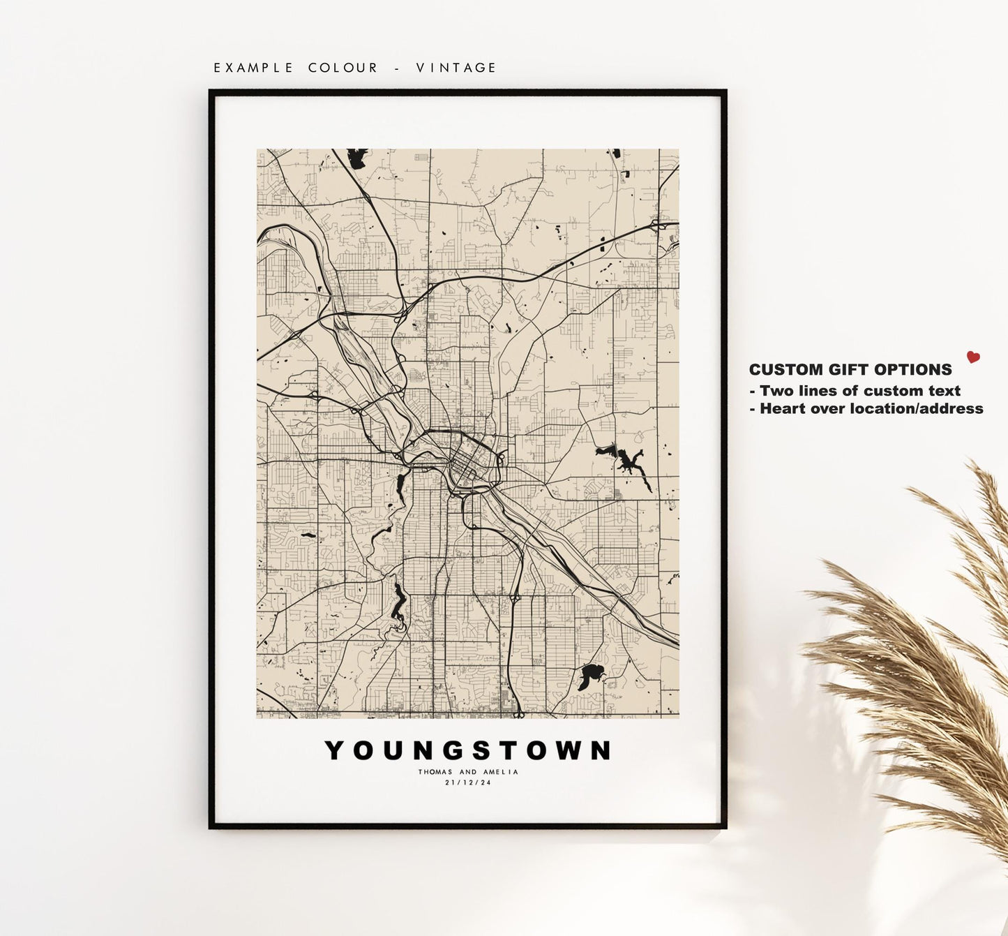 Youngstown Map Print - City Map Poster - Map Art - USA City Maps - Youngstown Print - Youngstown Poster - Minimalist City Map - Ohio
